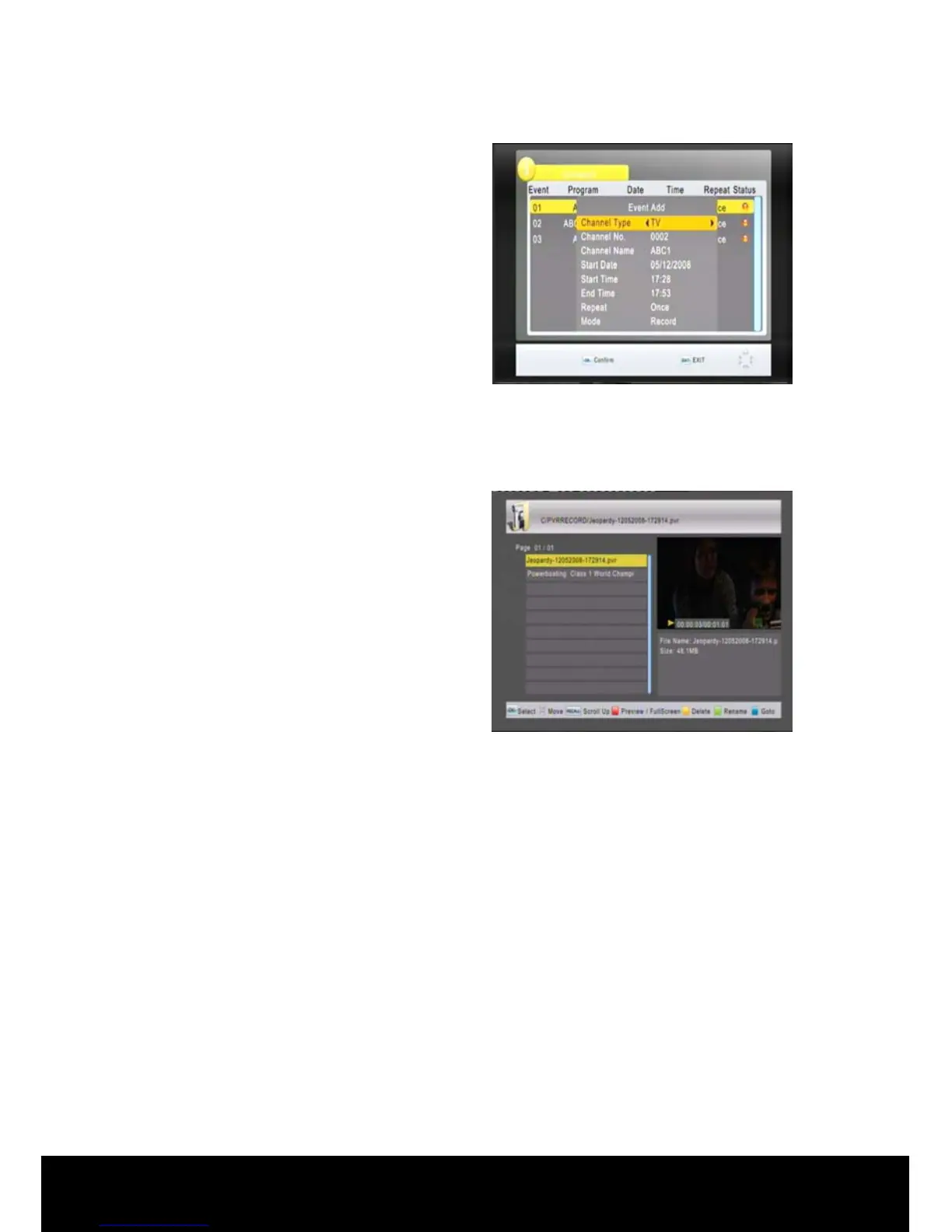Press OK to save the scheduled events and EXIT to exit the menu.