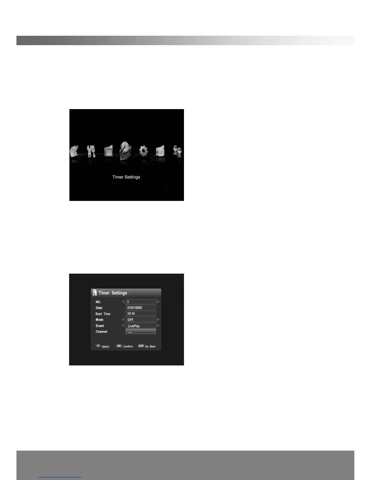 Timer Settings. Entering Timer Settings will show the following screen below.