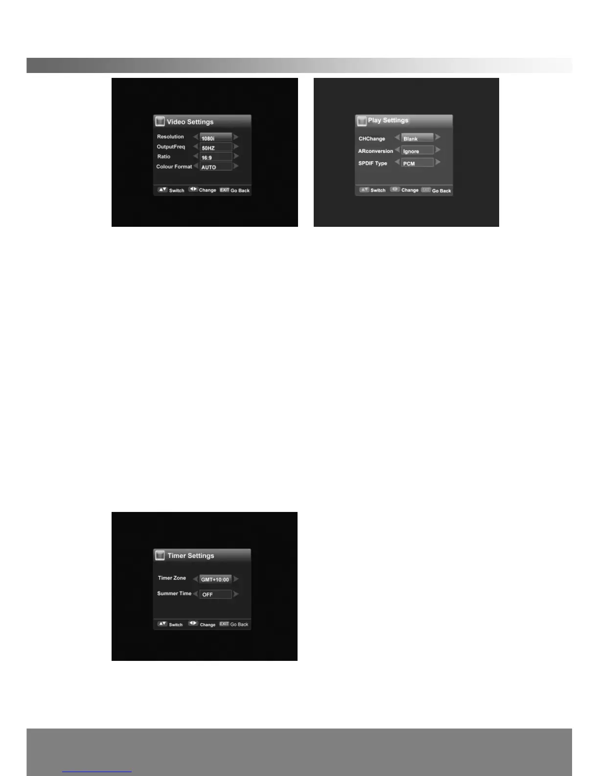 Time Zone: Use Left/Right button to set the time using GMT in Time Zone setting.