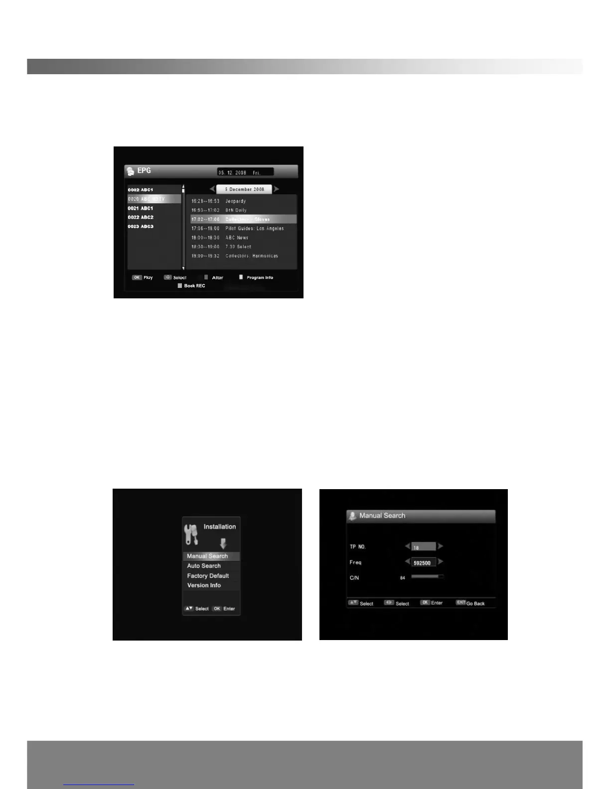 1. If you press OK on Manual Search in the Installation Menu, the above screen will