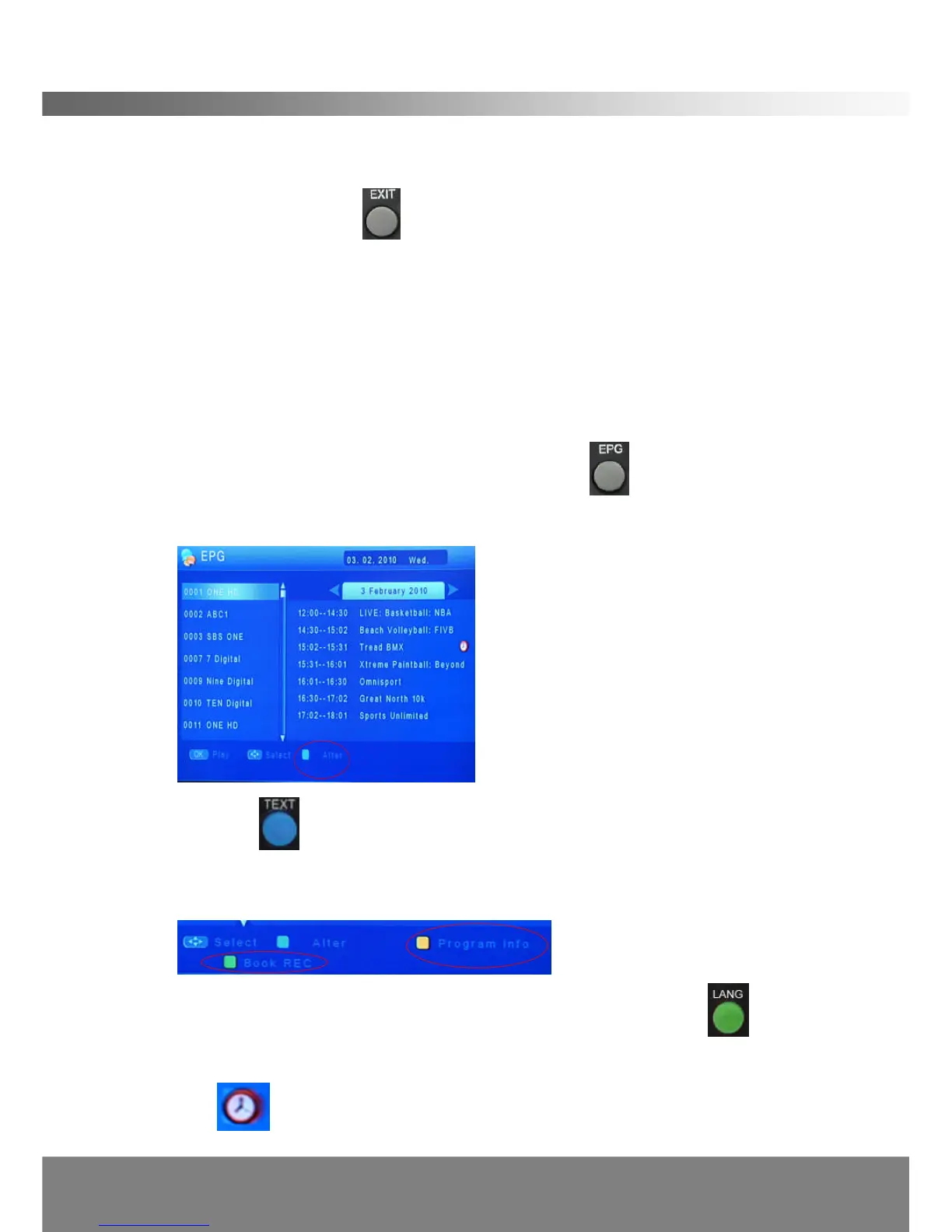 following will appear at the bottom of the EPG menu: