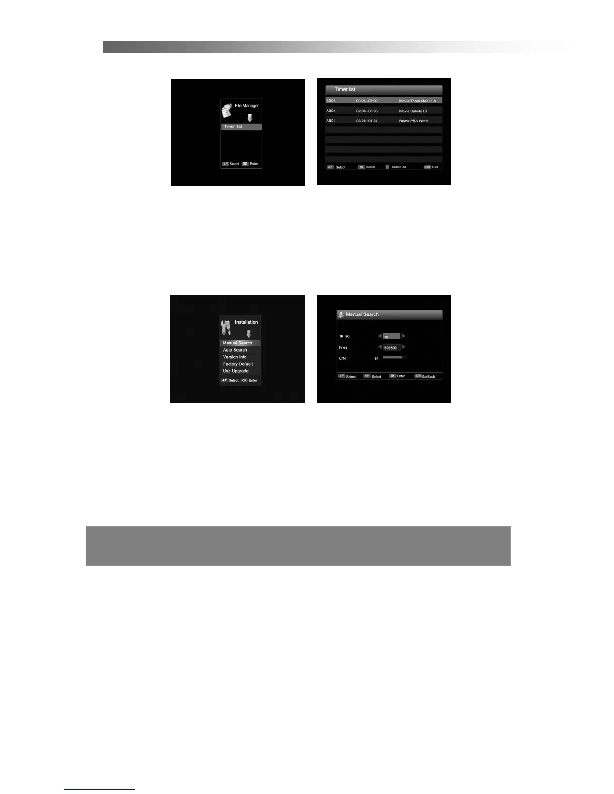 1. If you press OK in Manual Search of the Installation Menu, the following screen
