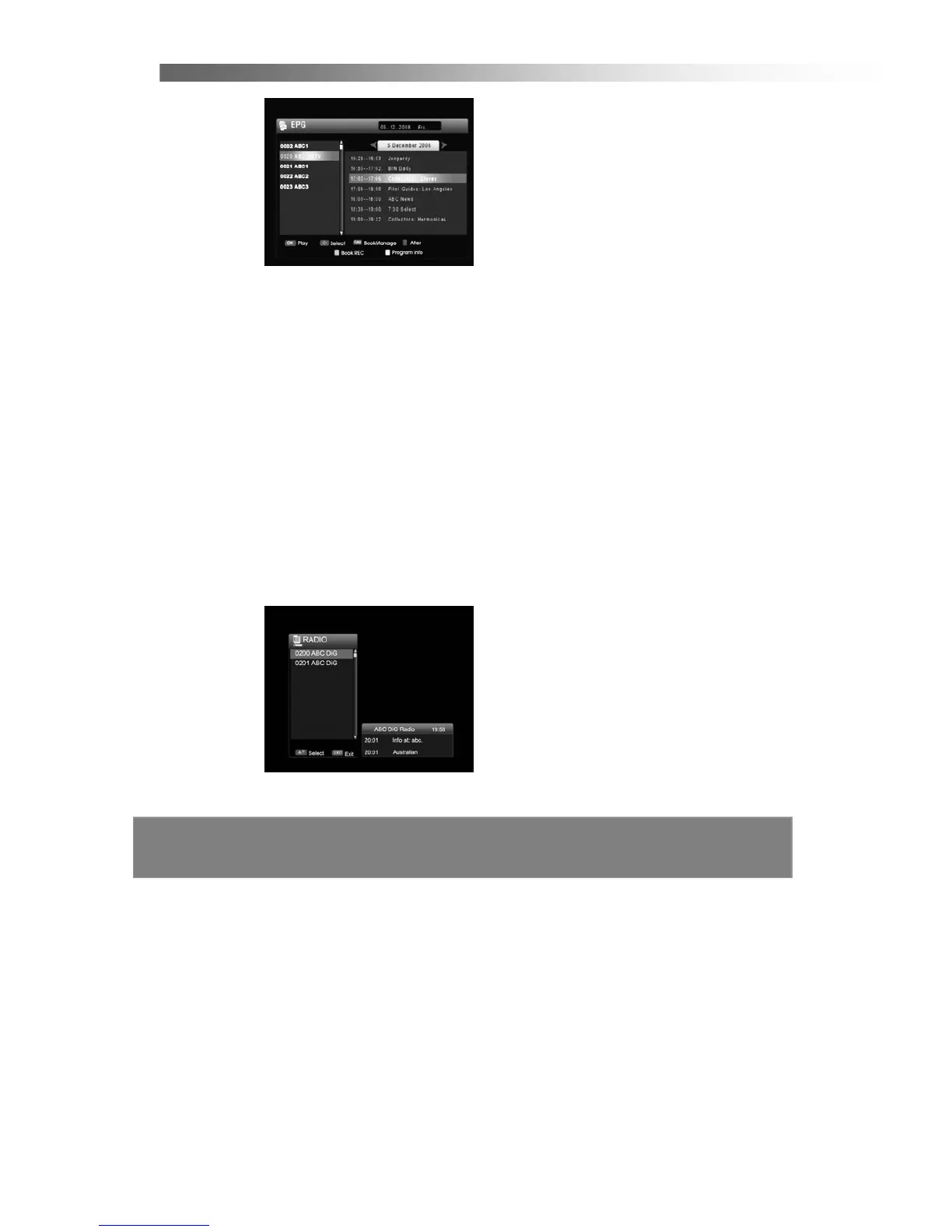 EPG menu.