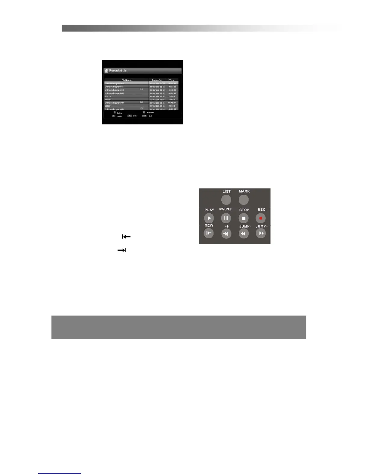 If you press “List” at normal state, the PVR list is displayed. You can play back