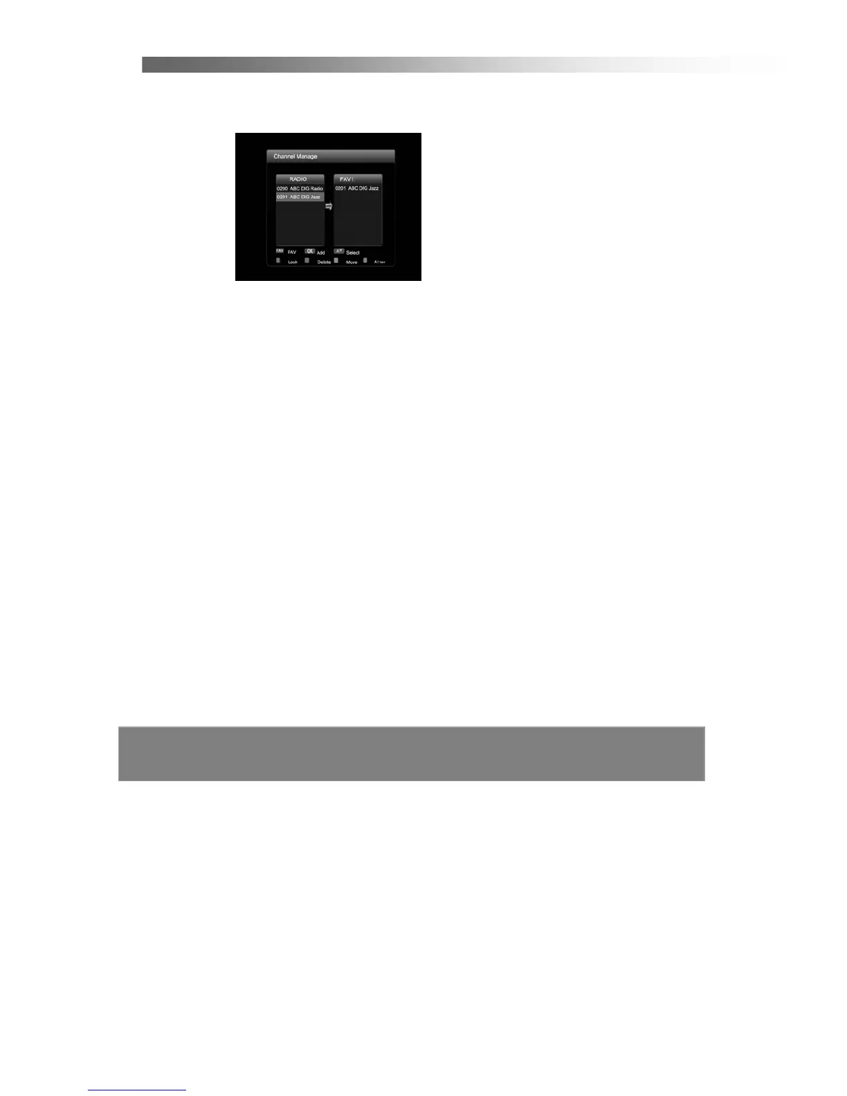 Move cursor to the required channel with Up/Down buttons, and then press OK