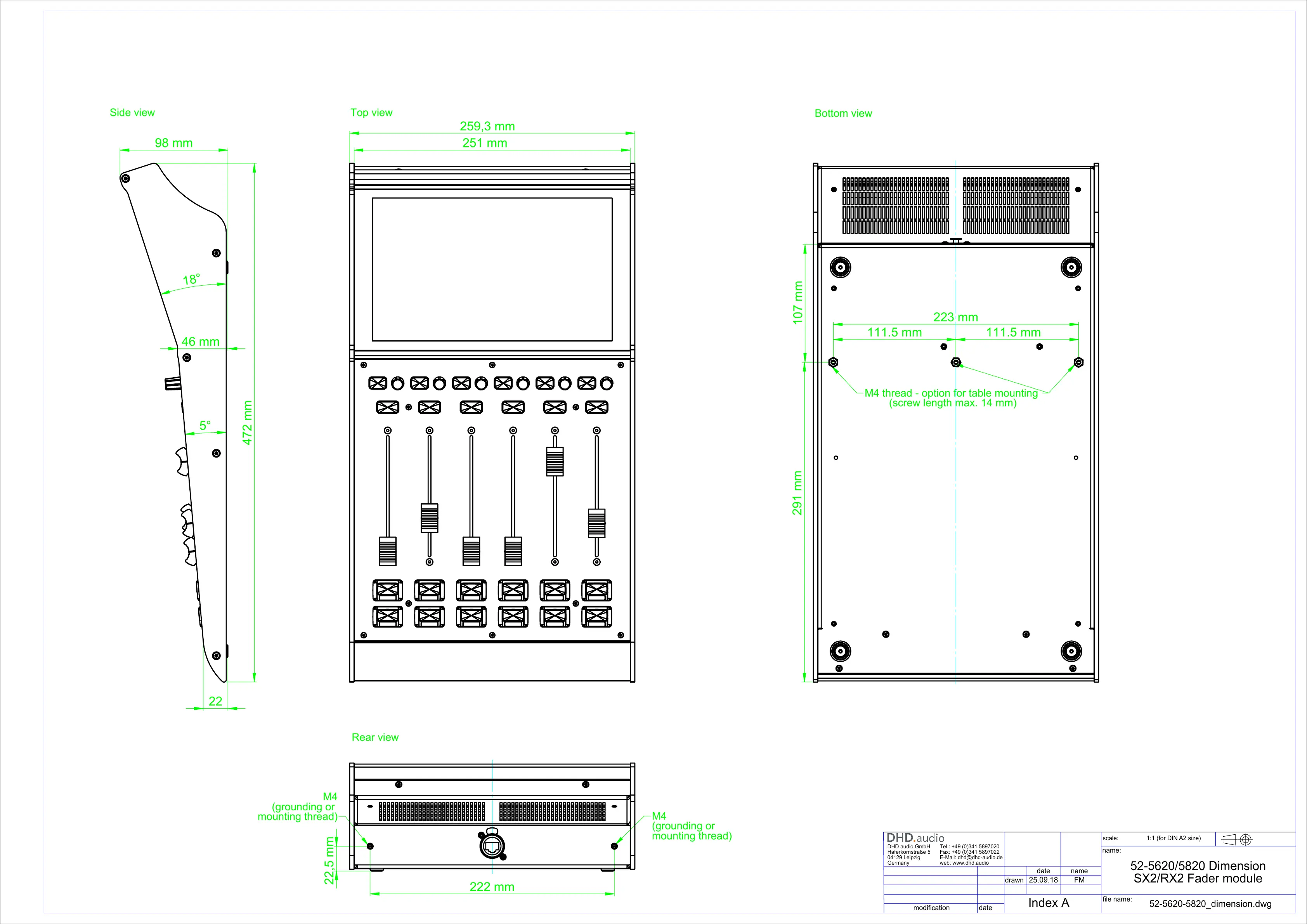 DHD.audio SX2 - SX2;RX2 Fader Module Dimensions