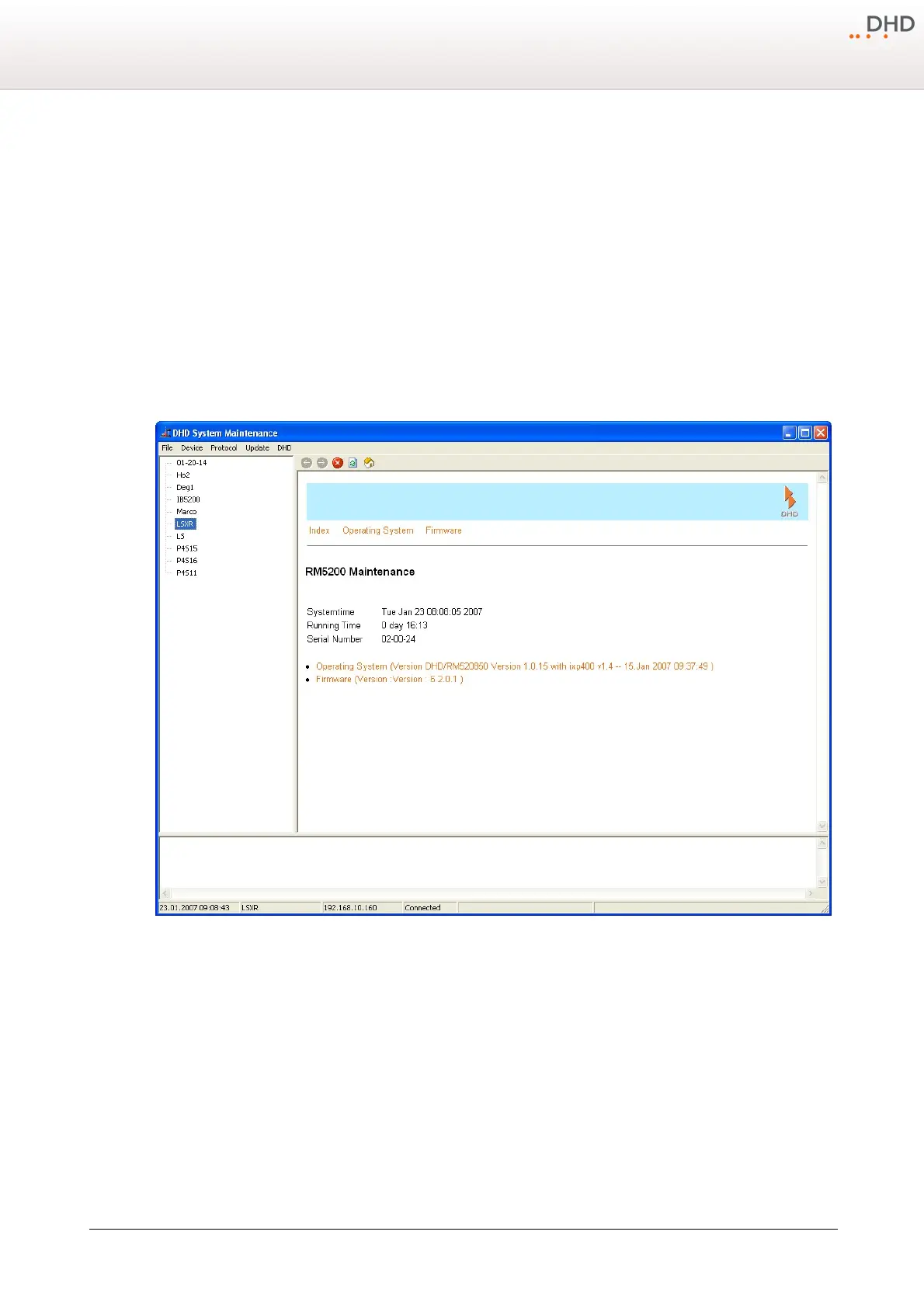 In the left upper part of the window, beneath the menu bar, you can see a list of the Series 52 systems accessible in the