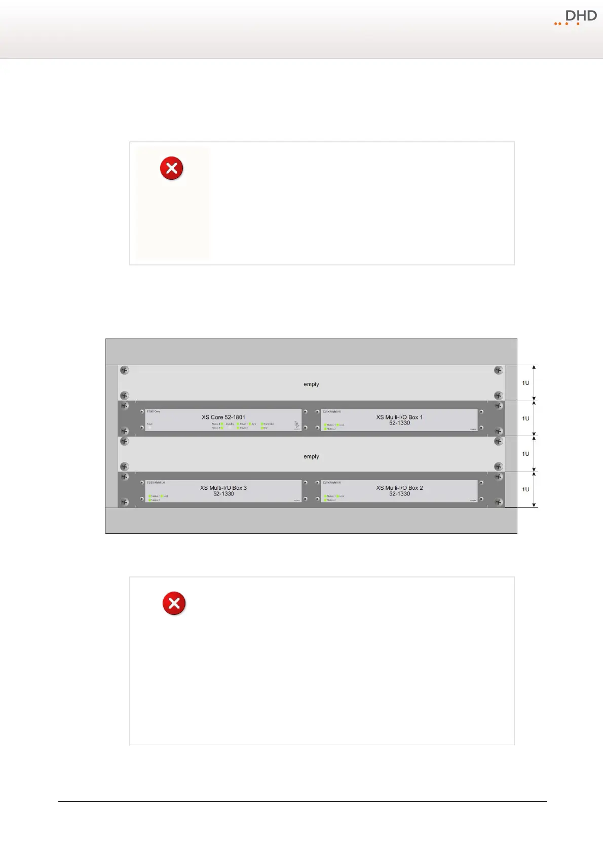 empty rack unit (1 U) is required above and below the XS Core and XS Multi-I/O