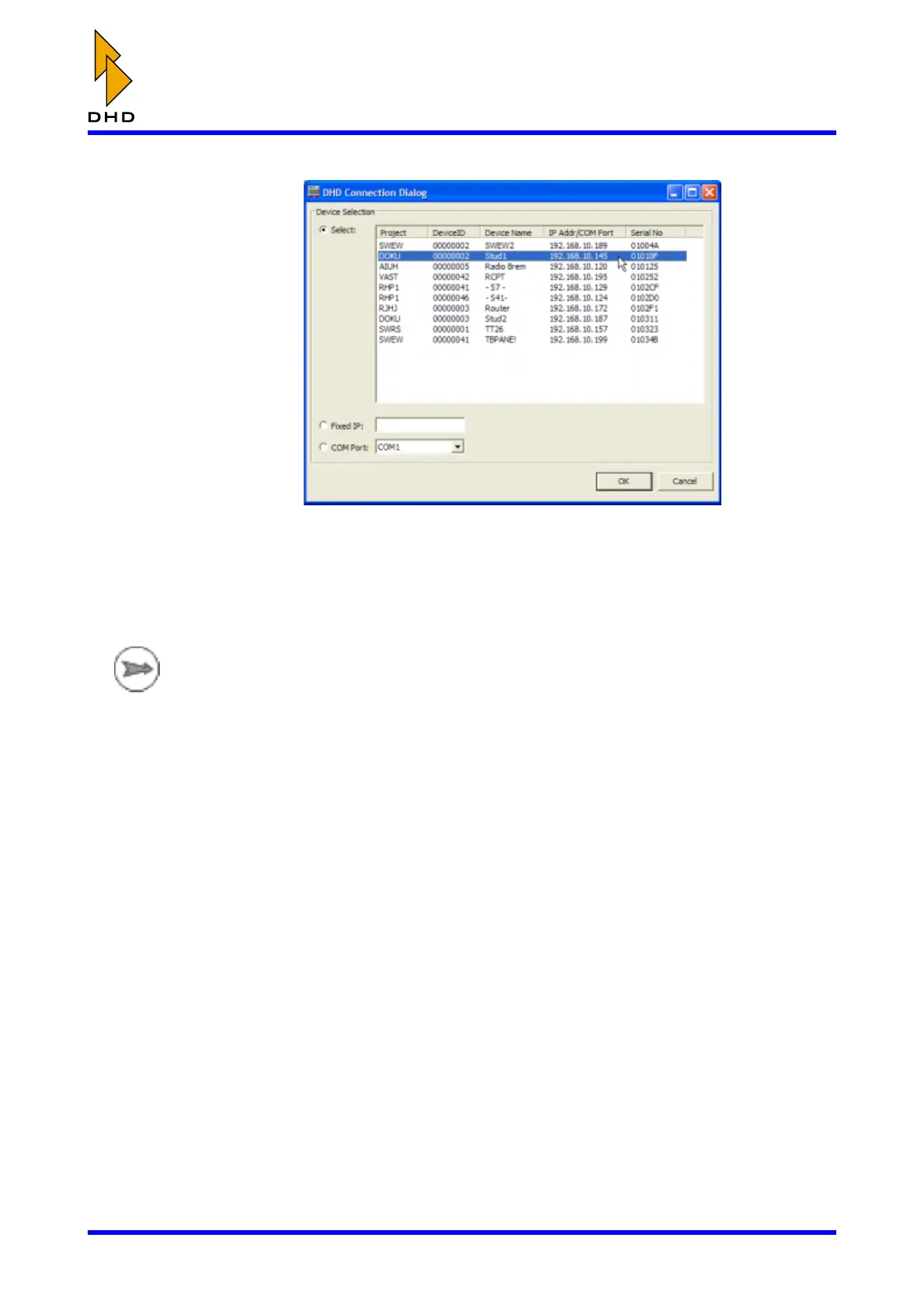 )LJXUH² 7KH'+'&RQQHFWLRQGLDORJIRUFRQQHFWLQJZLWKWKH50''HYLFH+HUHIRUXS