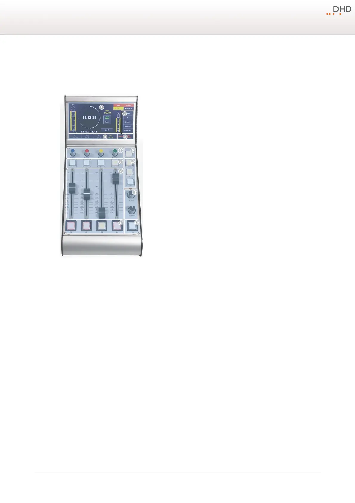 The 52/DX control module 52-1104 is a table top module including a 7" TFT Touch Display, 4 faders, push buttons,