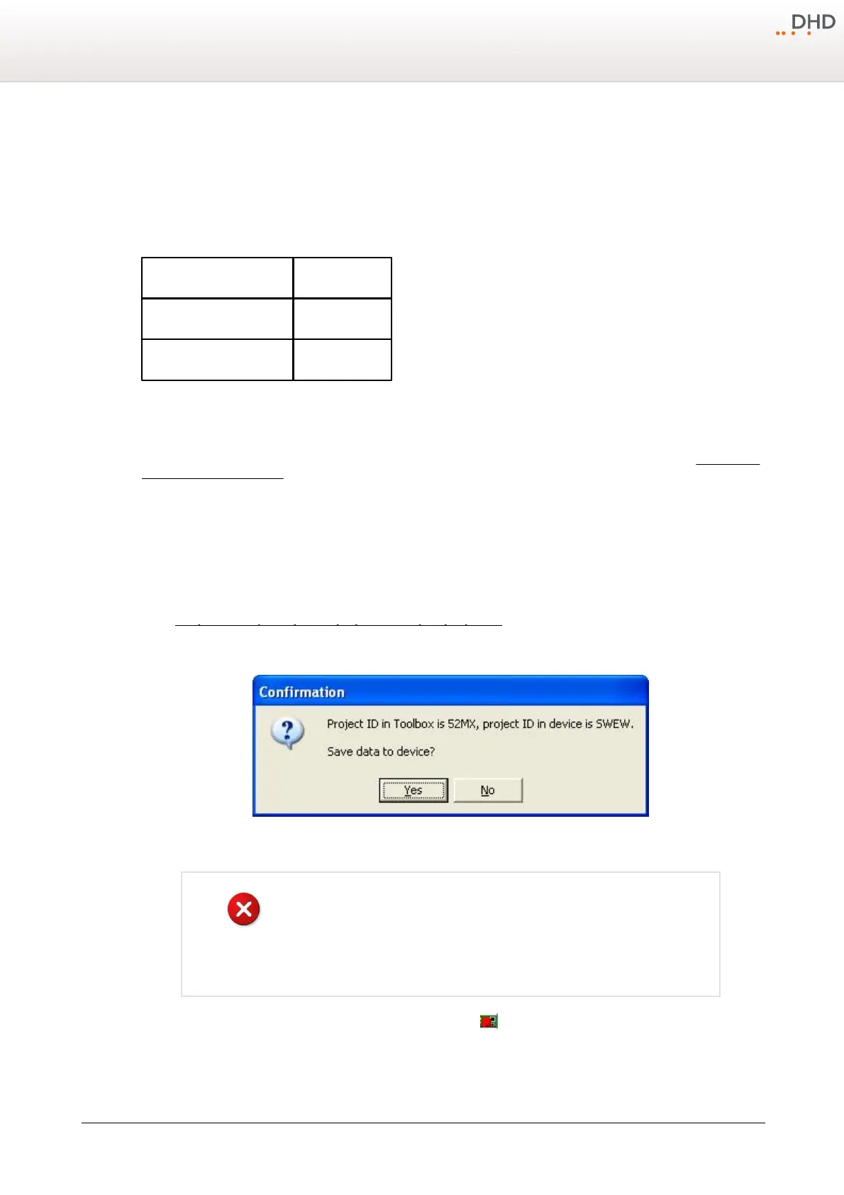 Confirmation window if the project IDs in the DXConfig software and the