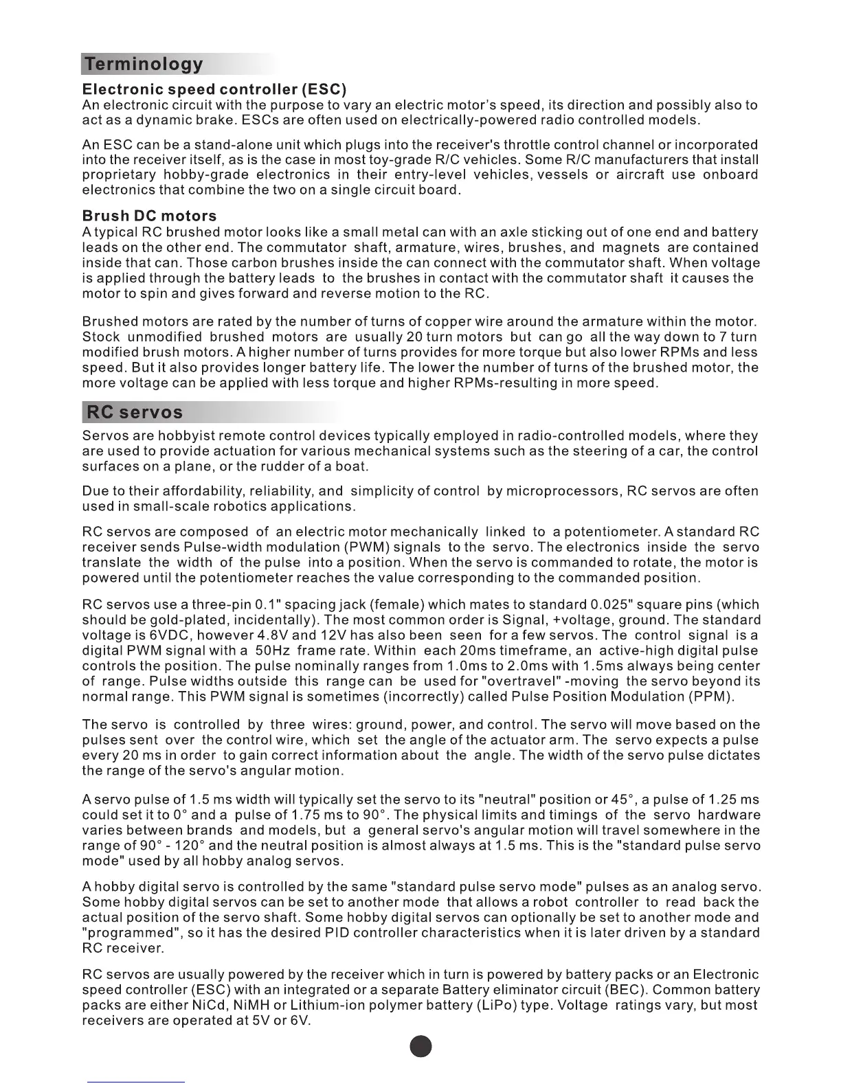 DHK Hobby Wolf - Technical Terminology; Electronic Speed Controller (ESC) Definition; Brush DC Motor Explanation; RC Servo System Explained
