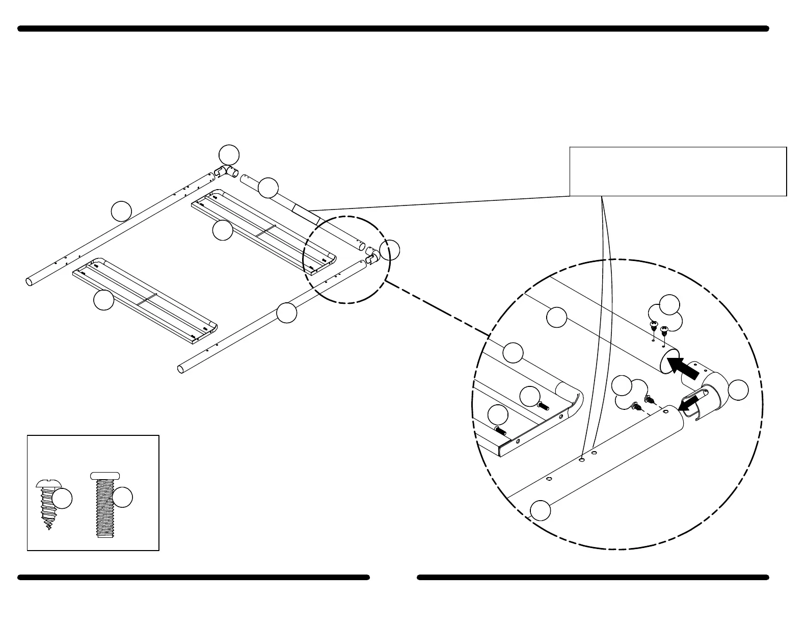 and B) with the SCREWS (4) as shown. Attach the END GUARD RAILS (I) to the LEG POSTS (A and B) with the BOLTS (2)