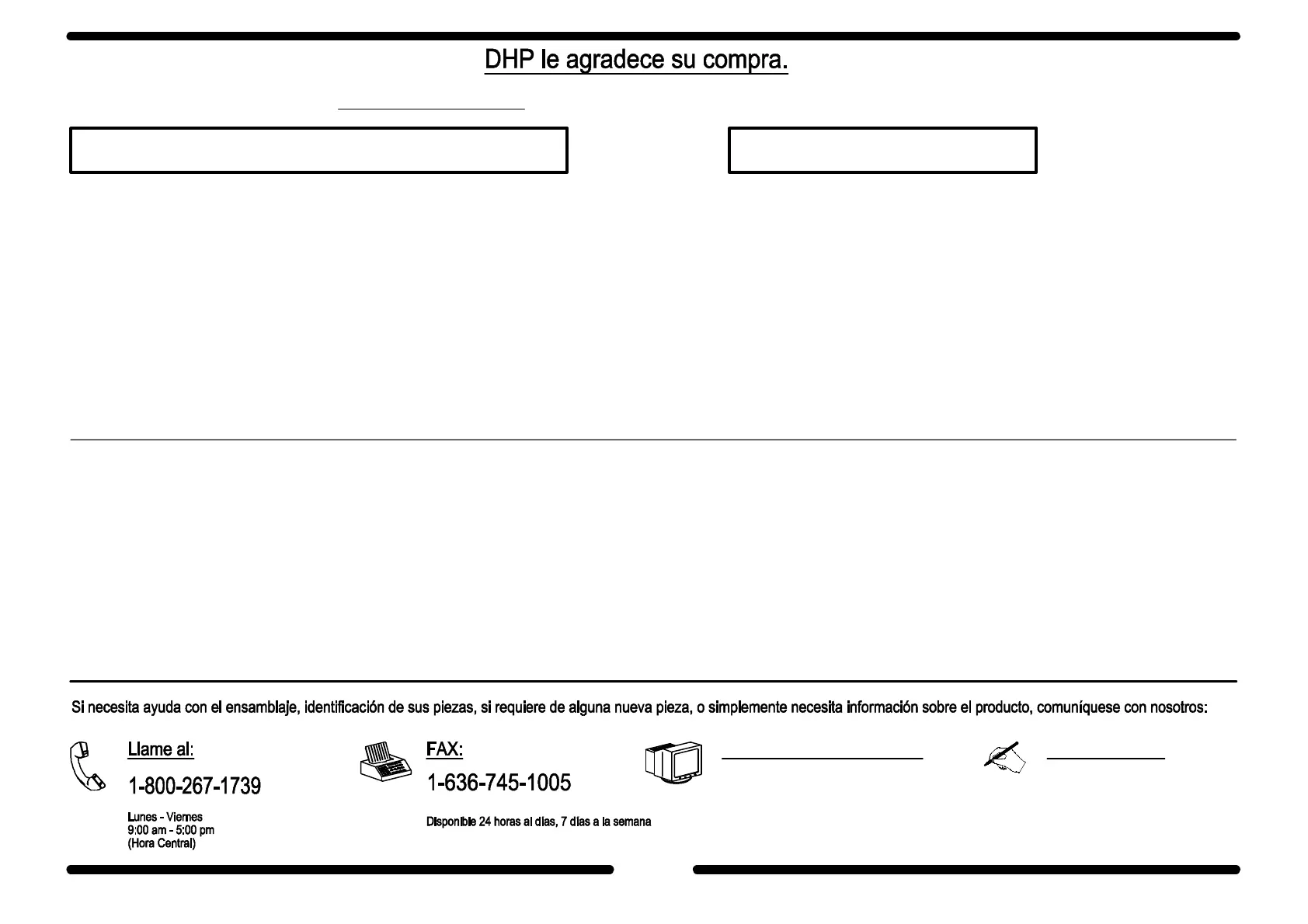 DHP garantiza que este producto está libre de defectos materiales y de mano de obra aceptando corregir cualquier defecto. Esta garantía es válida por un año a partir de la fecha de
