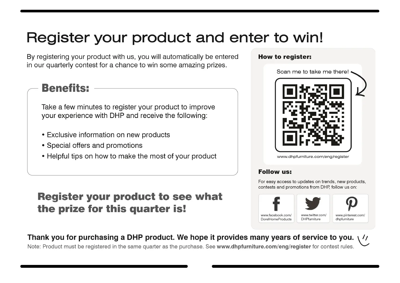 DHP 2079009W - Product Registration; Benefits of Registration; Registration Process; Connect with DHP Online