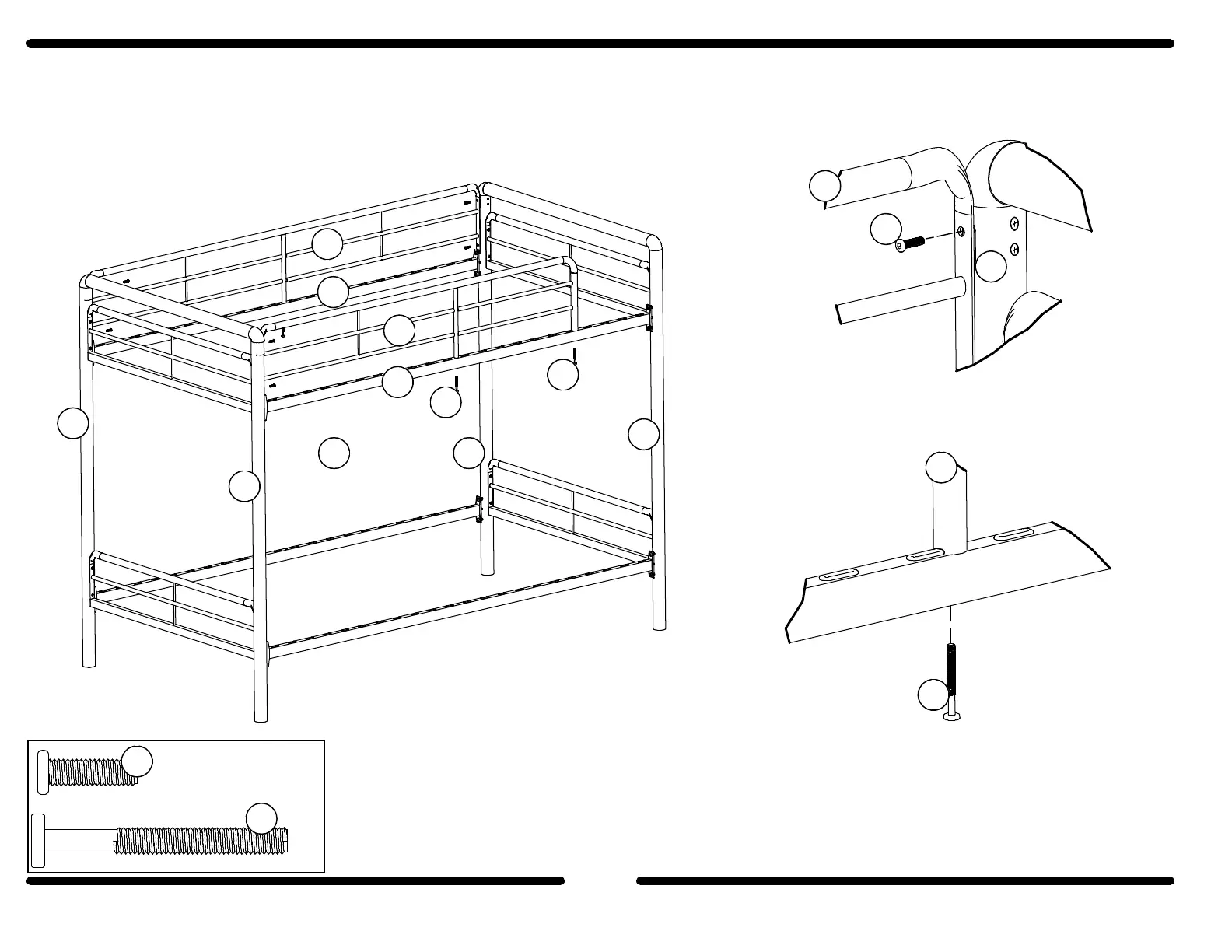 Attach the GUARD RAILS (E & F) to the LEG POSTS (A & B) and the SIDE RAILS (G & F) with the BOLTS (1 & 2) as shown.