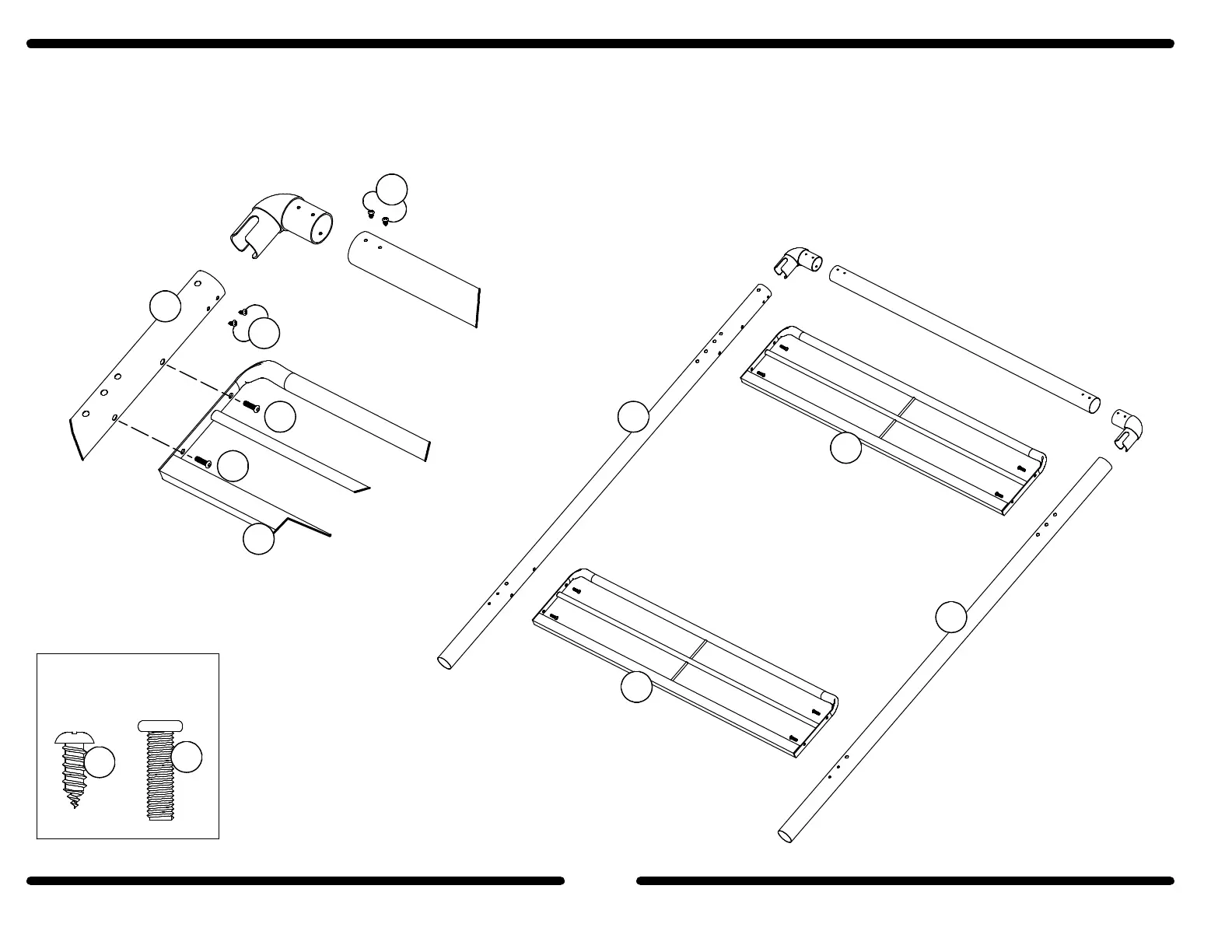 (C and B) with the SCREWS (4) as shown. Attach the END GUARD RAILS (I) to the LEG POSTS (C and B) with the BOLTS