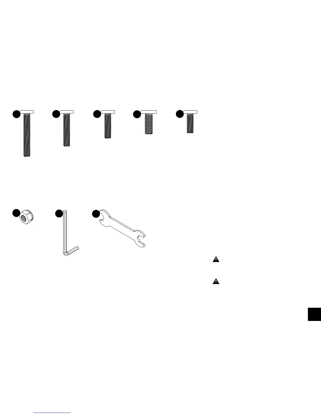 The screw(s), bolt(s) to be used at each step are