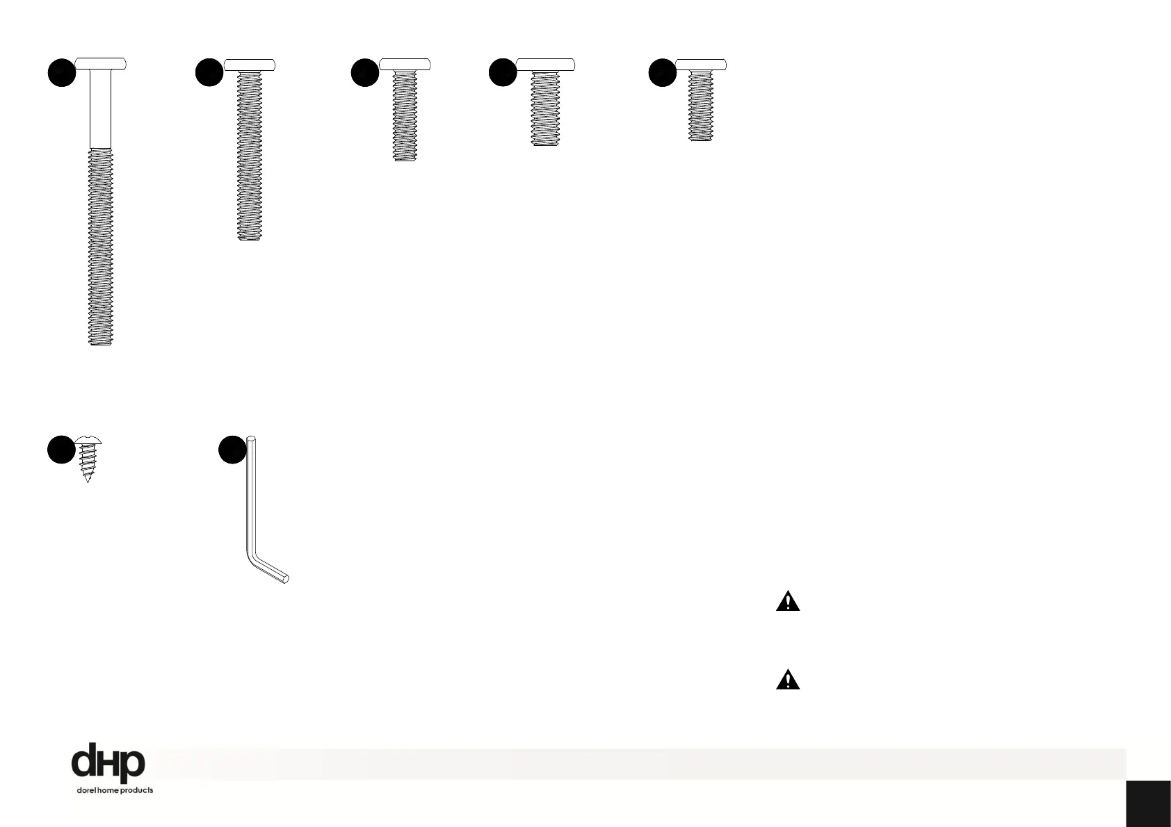 The screw(s), bolt(s) to be used at each step are