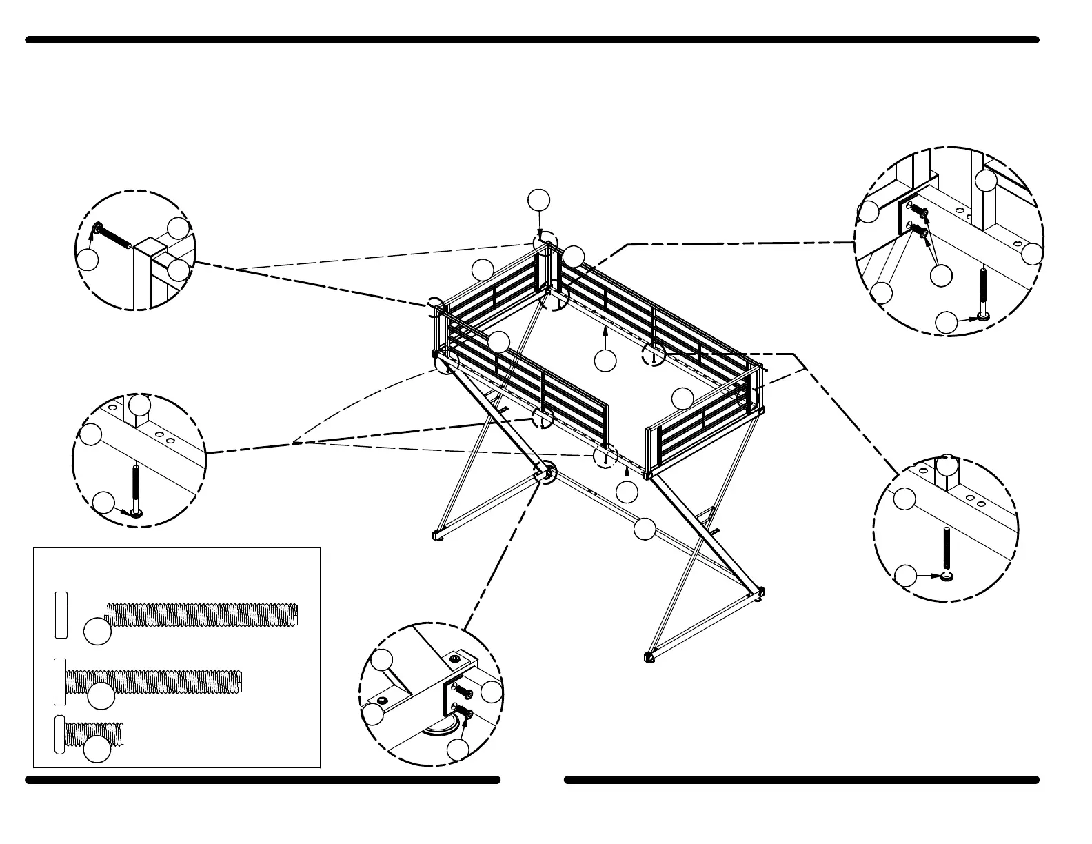 As shown in details (1, 3, 4 & 5), attach the Front & Rear Guard Rails (K & L) to Left and Right Guard Rails (E & F) with bolts