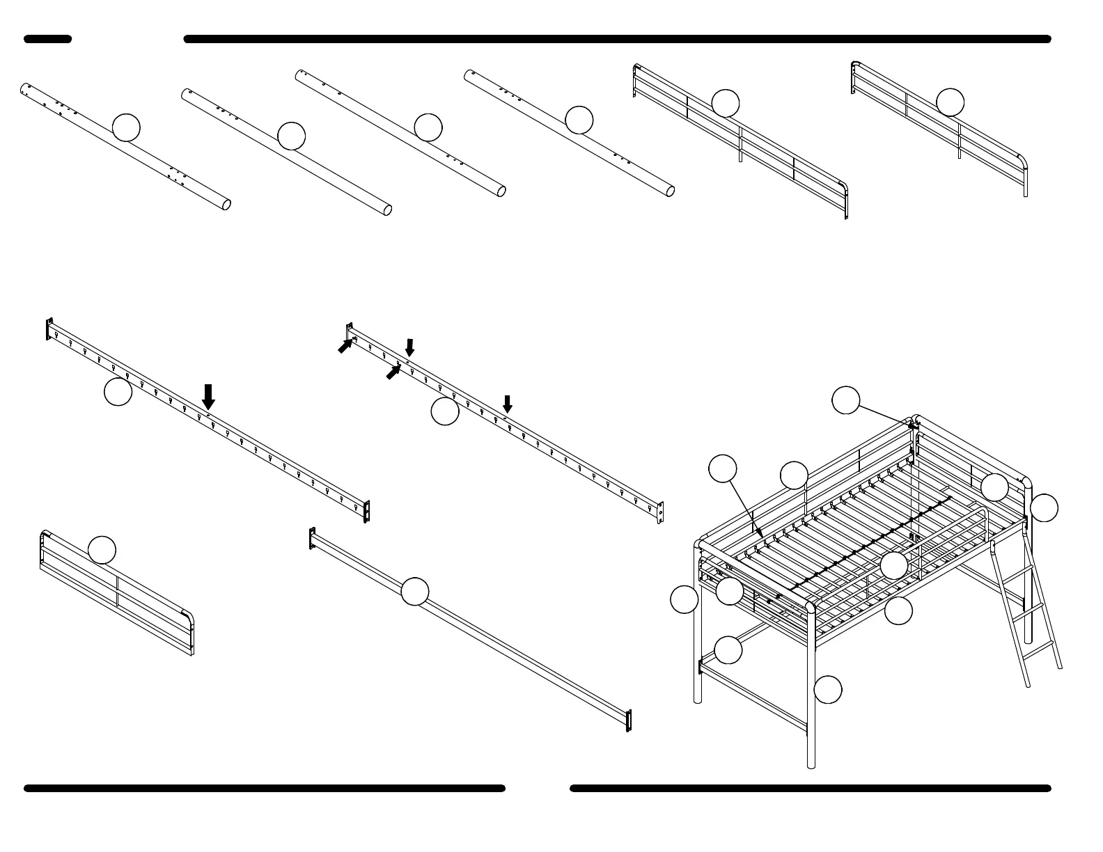 NOTE: PARTS: A, B , C & D HAVE PROTECTIVE END CAPS PRE-INSTALLED