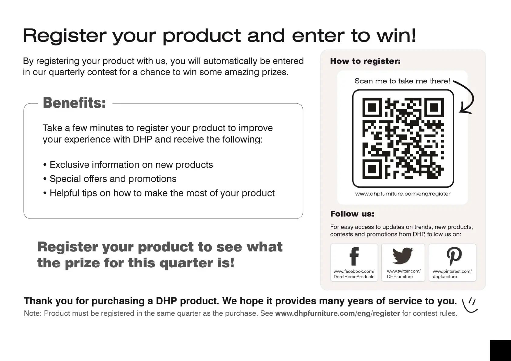 DHP Upholstered Bed 4175049 - Product Registration and Engagement; Registration Benefits and Process; Follow DHP on Social Media