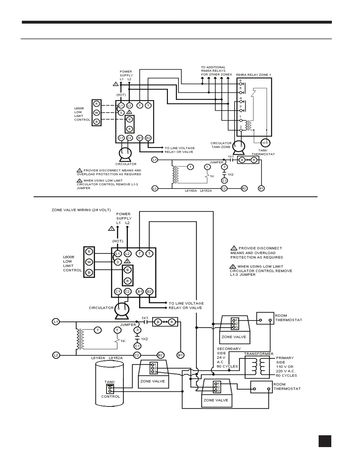 USING L8143A OR L8152A COLD START BOILER CONTROL WITH ZONE VALVES