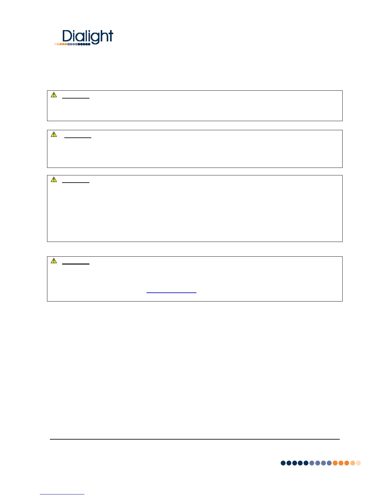 • Only genuine Dialight replacement parts are to be used when unforeseen maintenance is required.