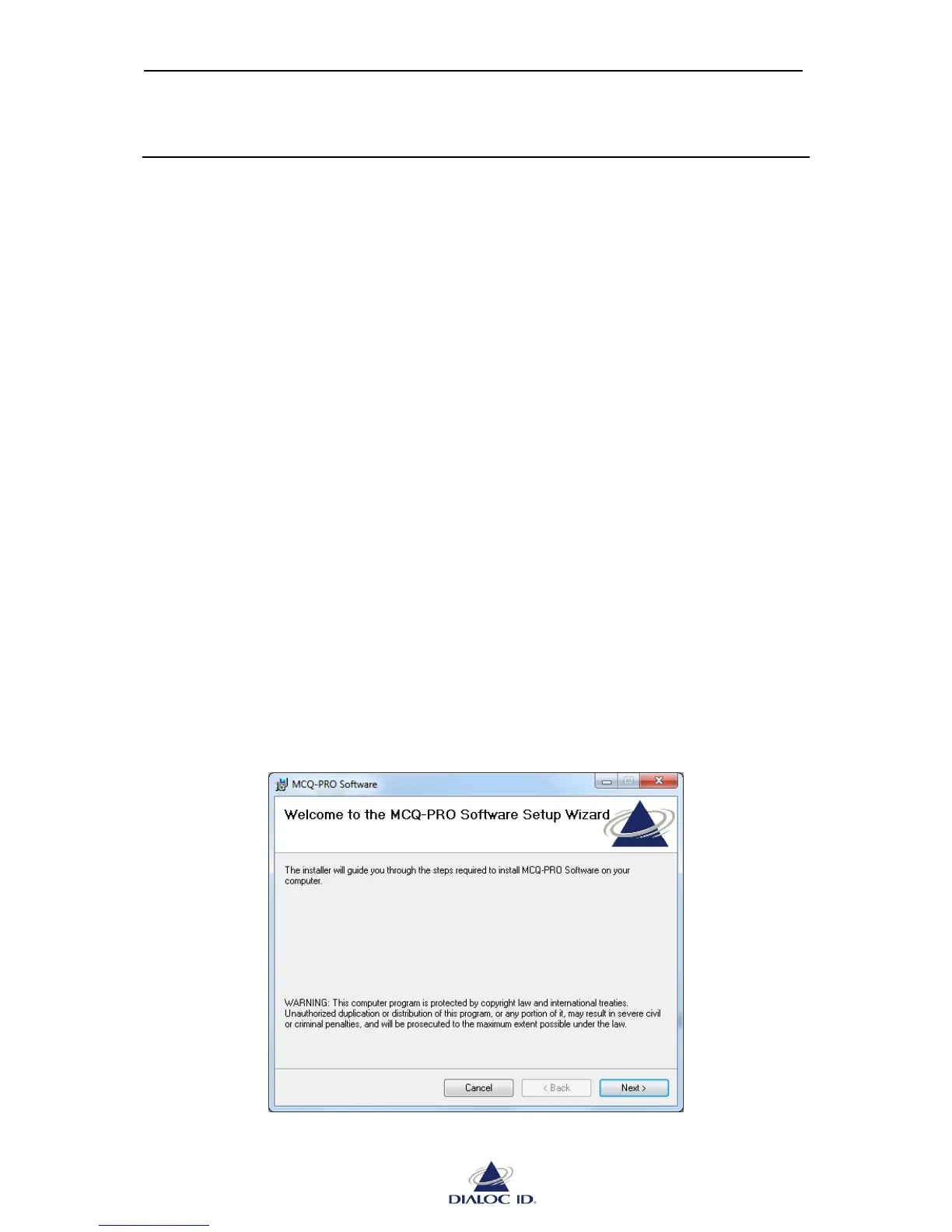 To install the DIALOC ID MCQ-Pro software on your PC: