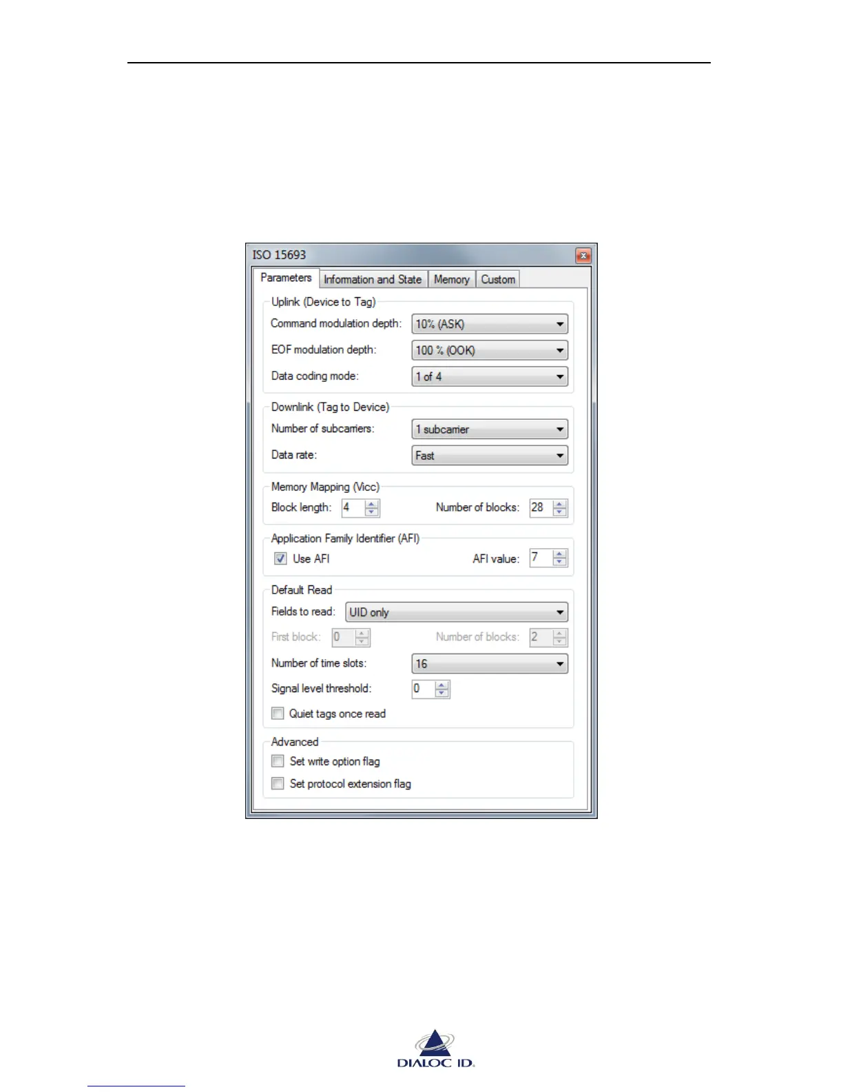 Figure 52: ISO 15693 panel (Parameters tab)