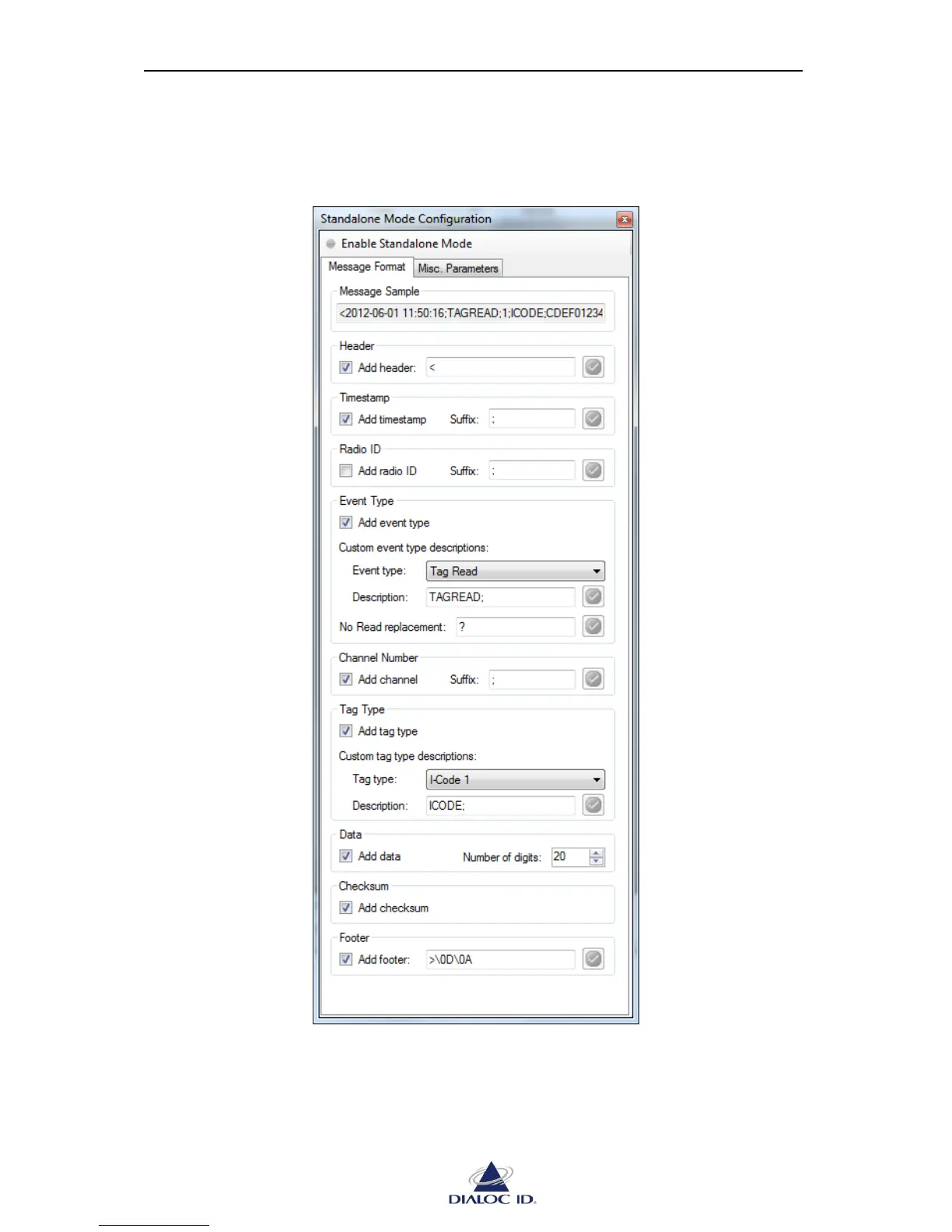Figure 70: Standalone Mode panel (Message Format tab)