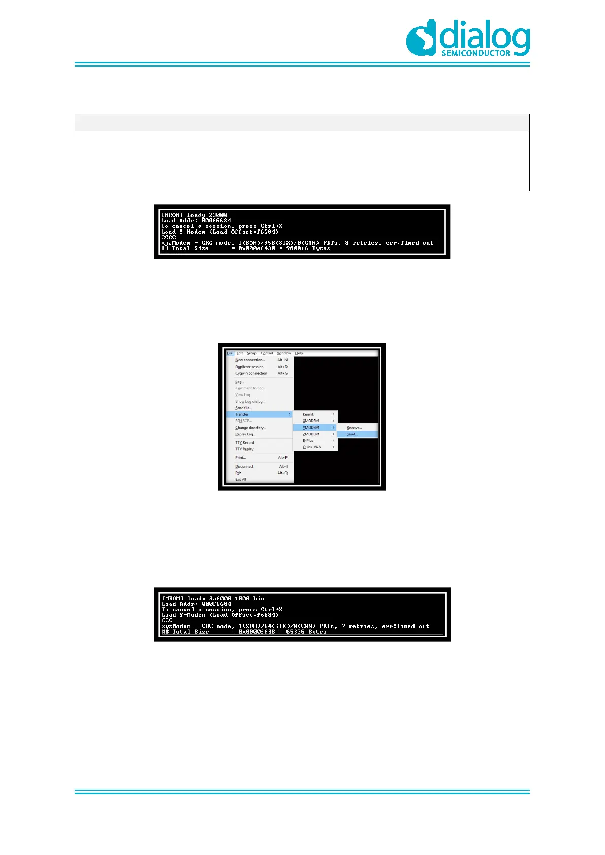 2. Go to File > Transfer > YMODEM > Send to select the <Main image> file.
