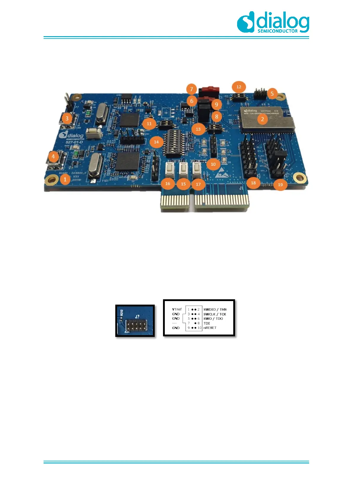 4. USB Port: to debug, connect directly to DA14531, but do not use this port for normal operation.