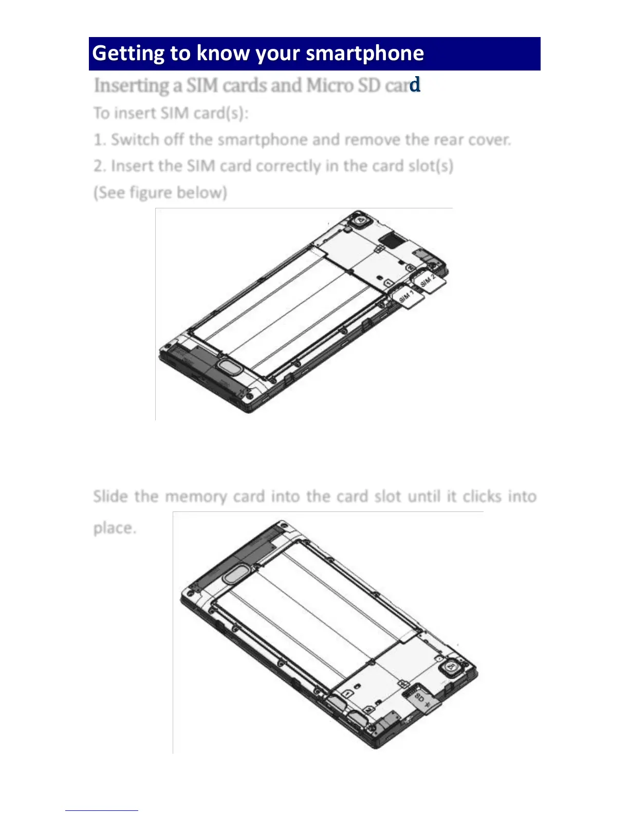 Dialog Infinity Pro - Getting to Know Your Smartphone; Inserting SIM and Micro SD Cards