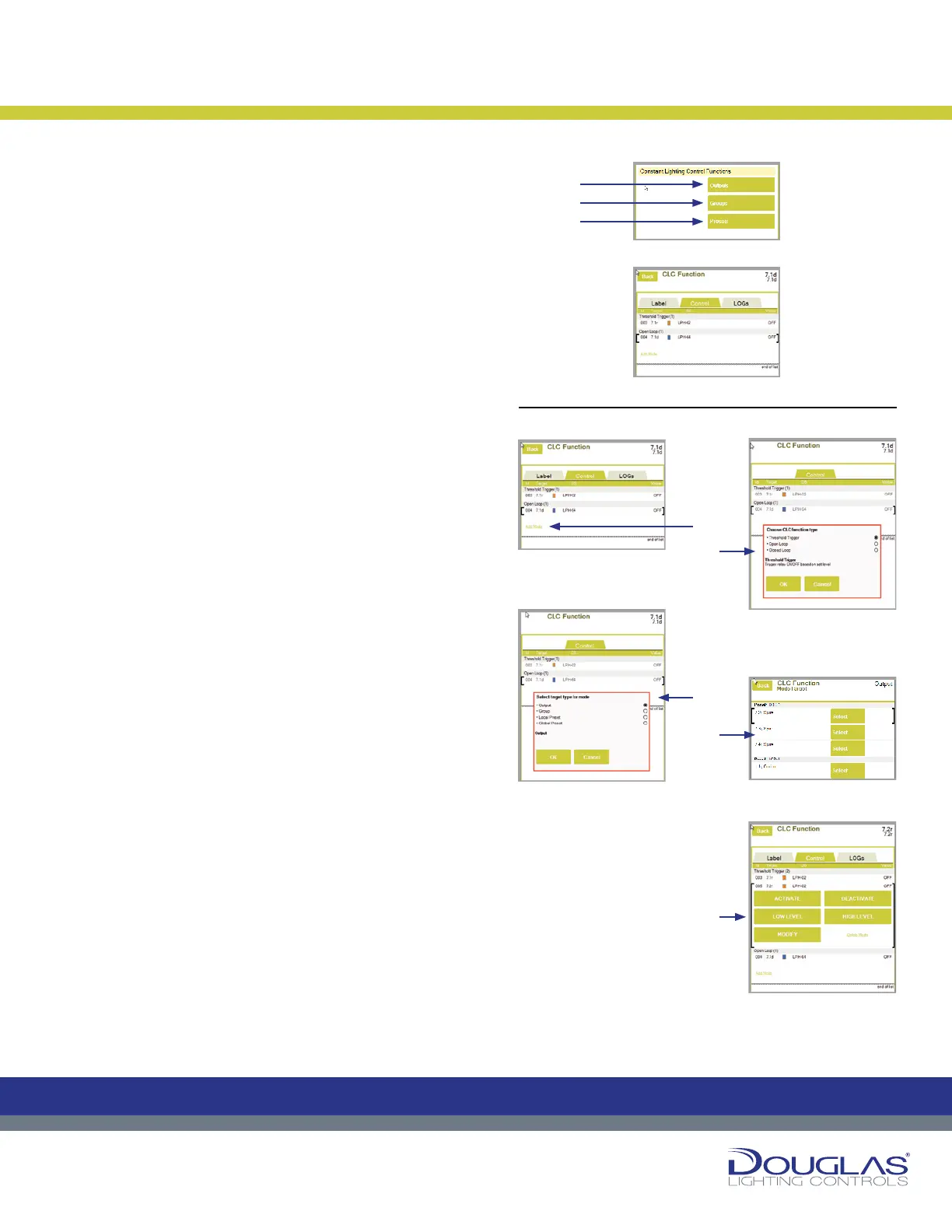 The outputs are listed by type of CLC setting in the order of the controlling