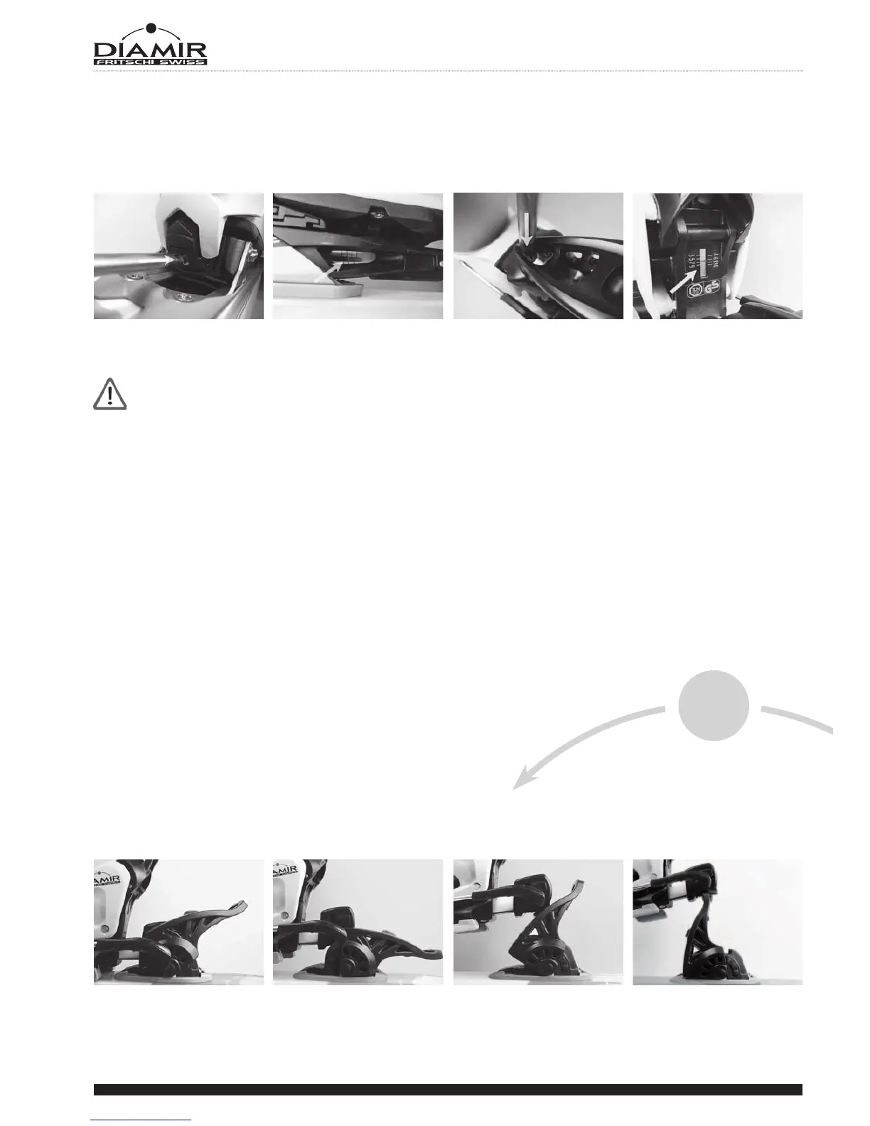 Any alterations to the binding, improper mounting and adjustment or use with non Diamir accessories, increase the risk of non-