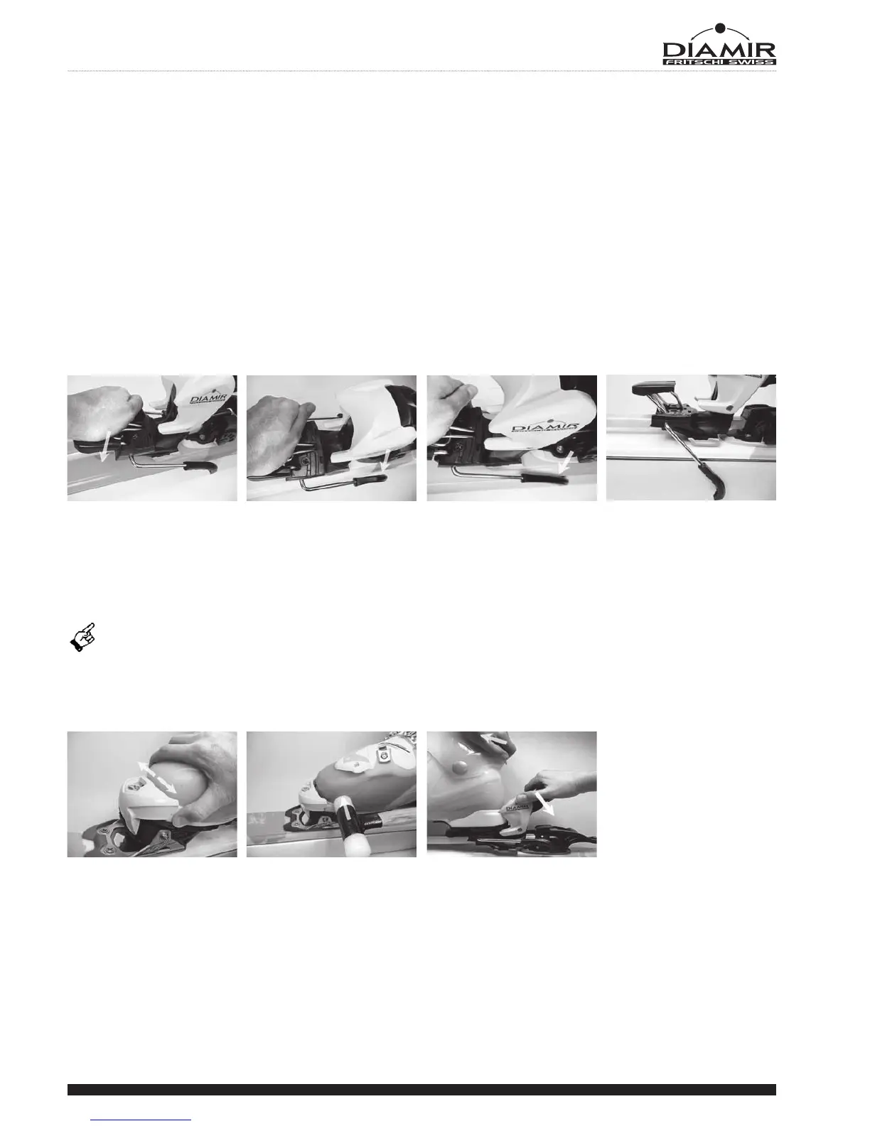 By pushing down the ski brake (Picture 6.4 A) the arms of the ski brake should not touch the edges of the ski (Picture 6.4 B).