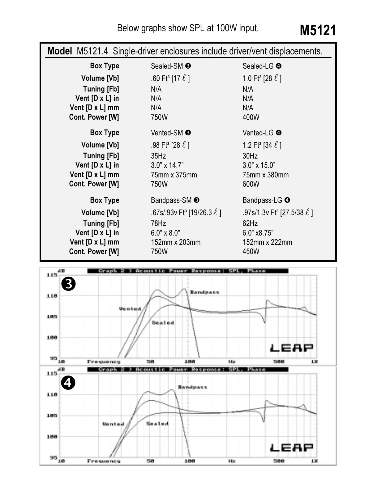 Model M5121.4 Single-driver enclosures include driver/vent displacements.