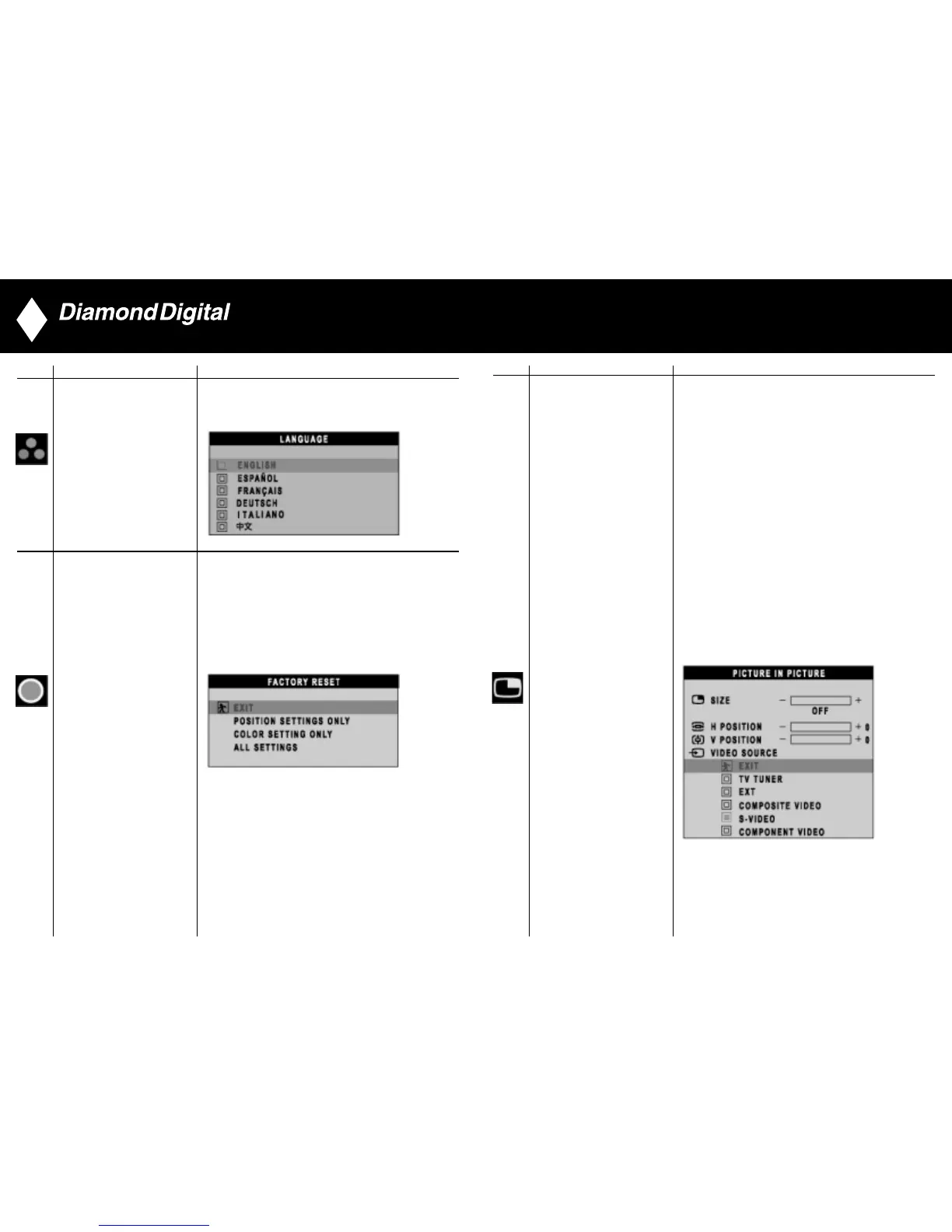 SIZE: Turn off and set the size of PIP. Users can chose your
