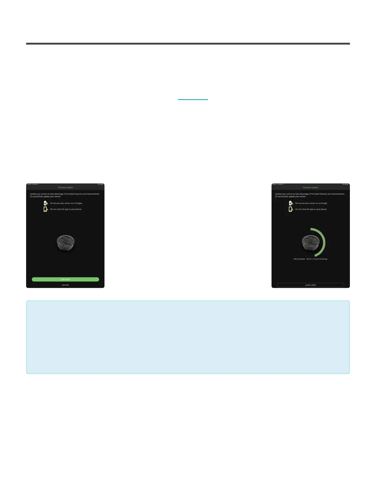 - If the update fails, forget the sensor from Bluetooth, turn off Bluetooth, restart device