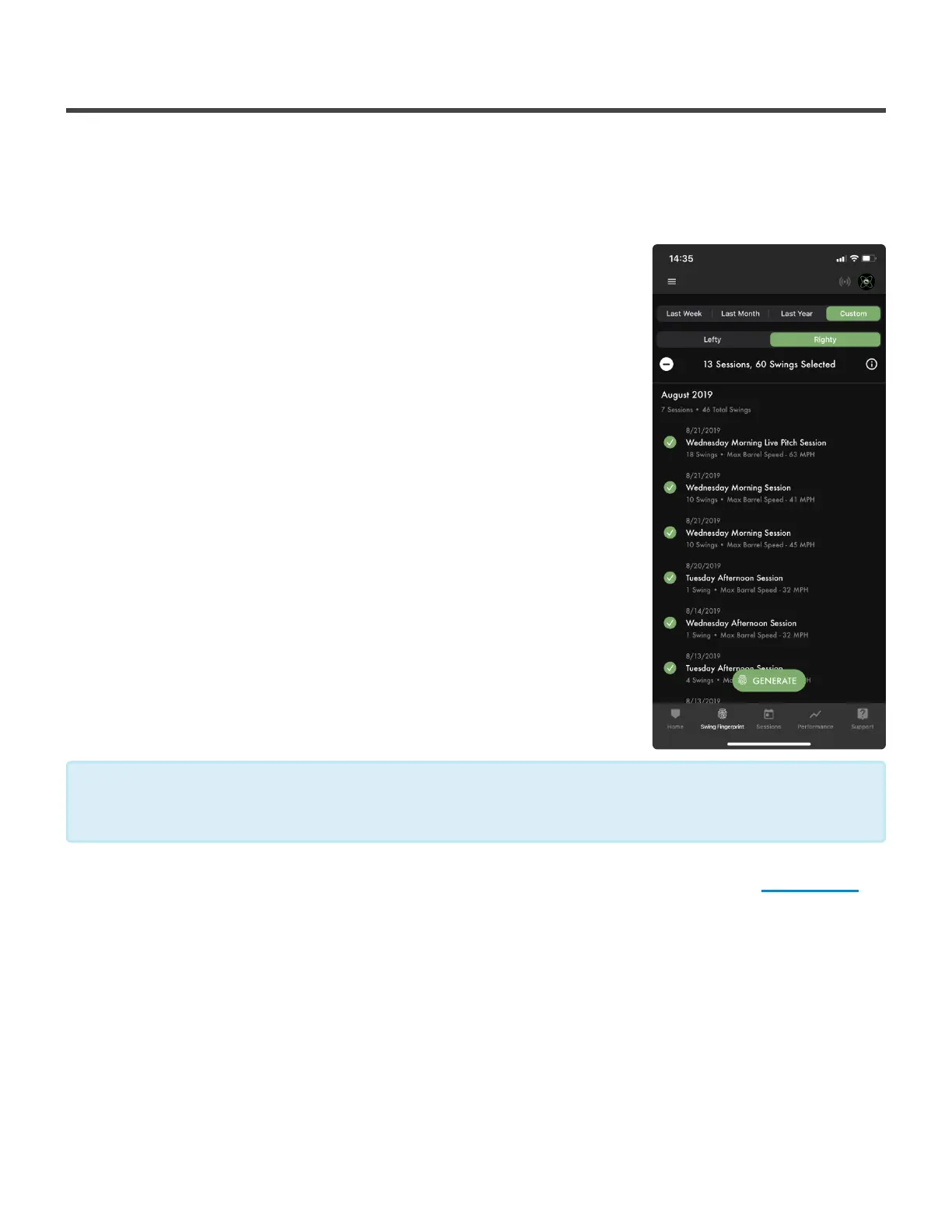 2. Tap on the sessions you want to use for your Swing Fingerprint