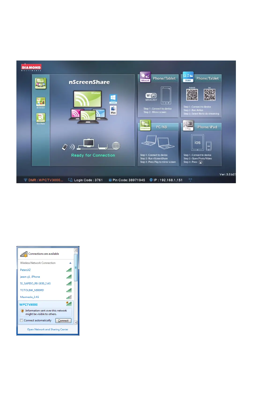 (The sample of “device SSID” in the picture is “WPCTV3000”)