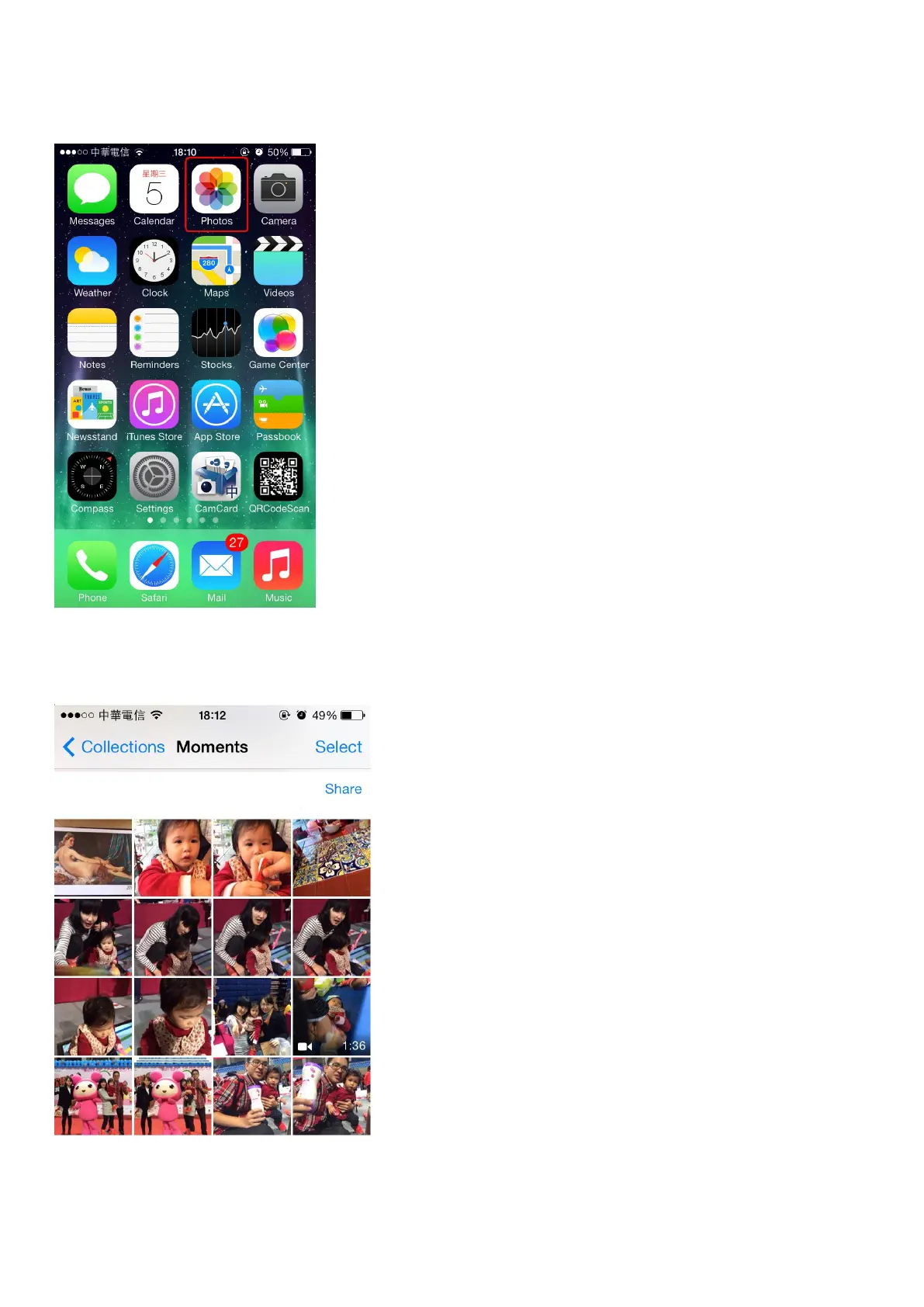 (3) Choose the photos or videos witch you want to share.