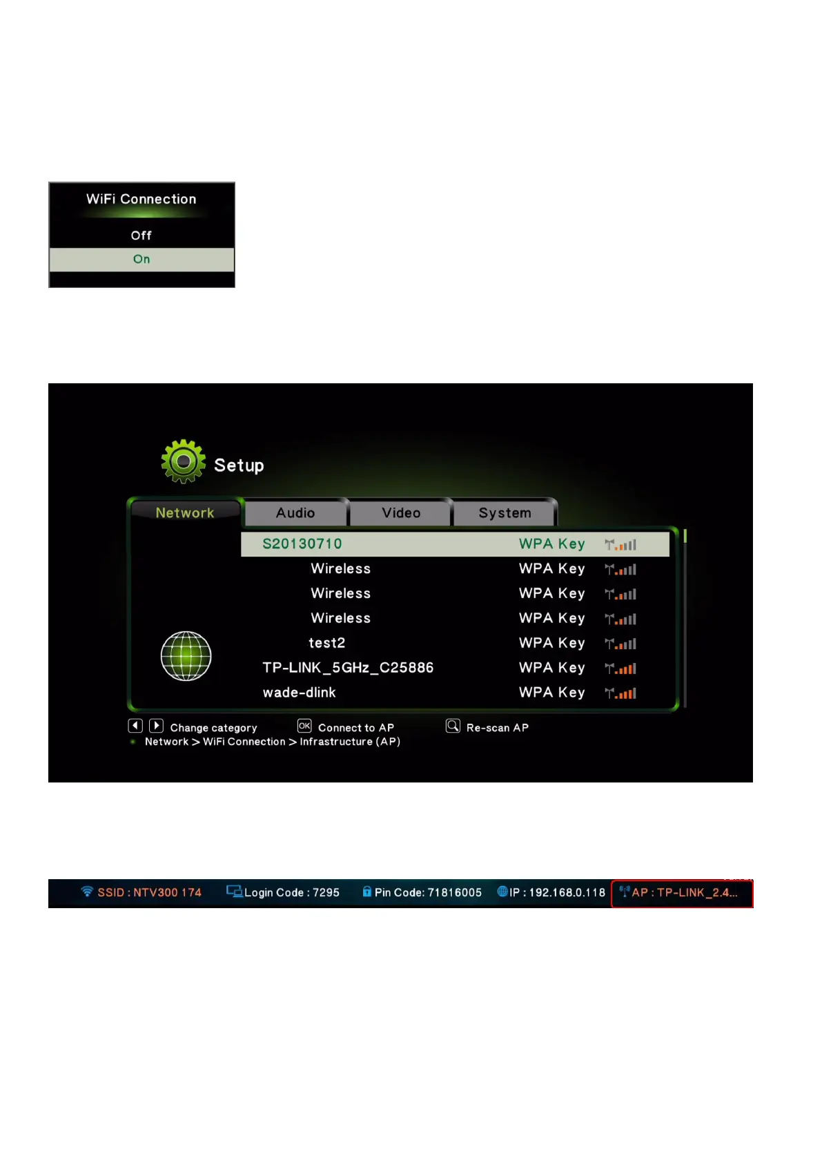 Then there will show the Wireless AP list on the screen. Please choose the AP you want to connect. The