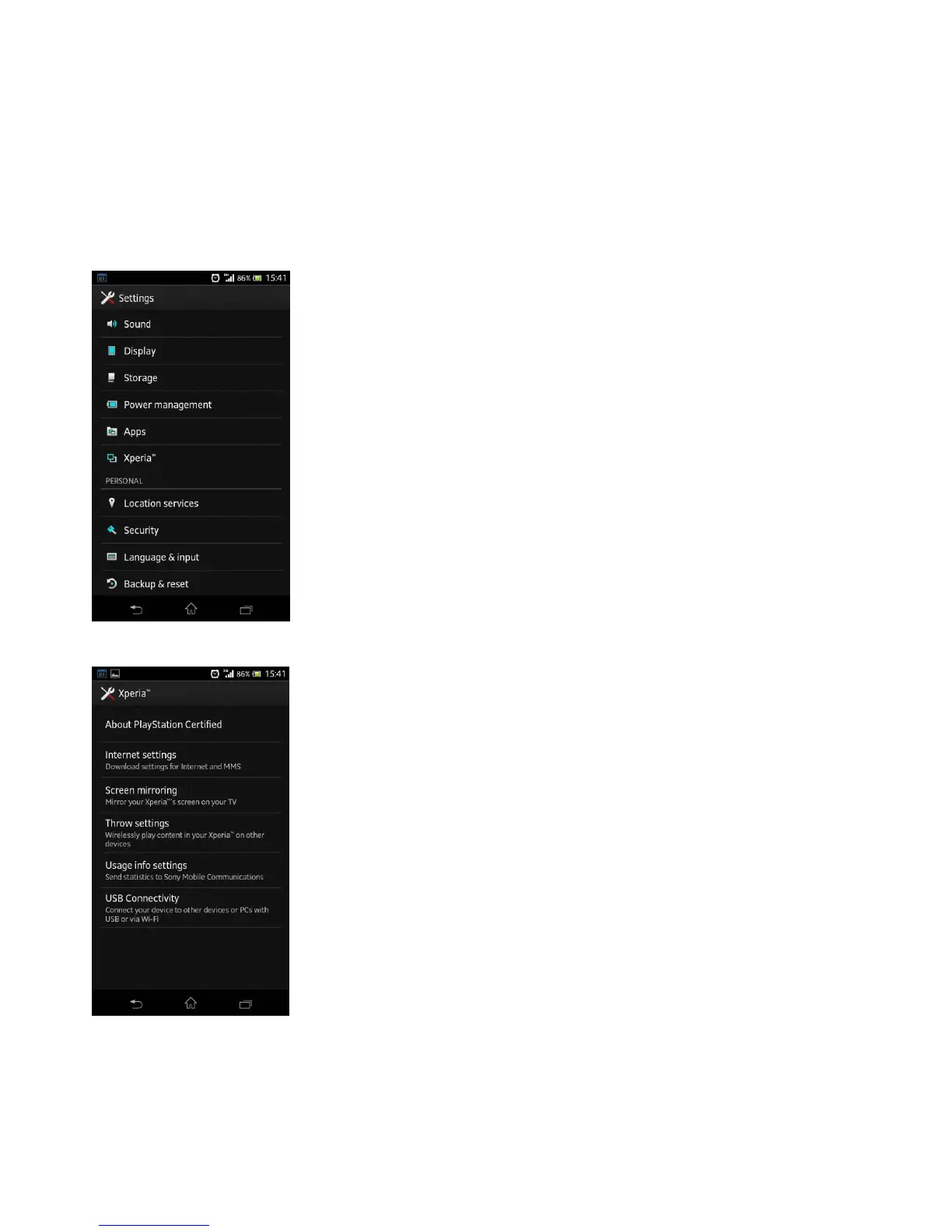 (1) Settings -> Xperia