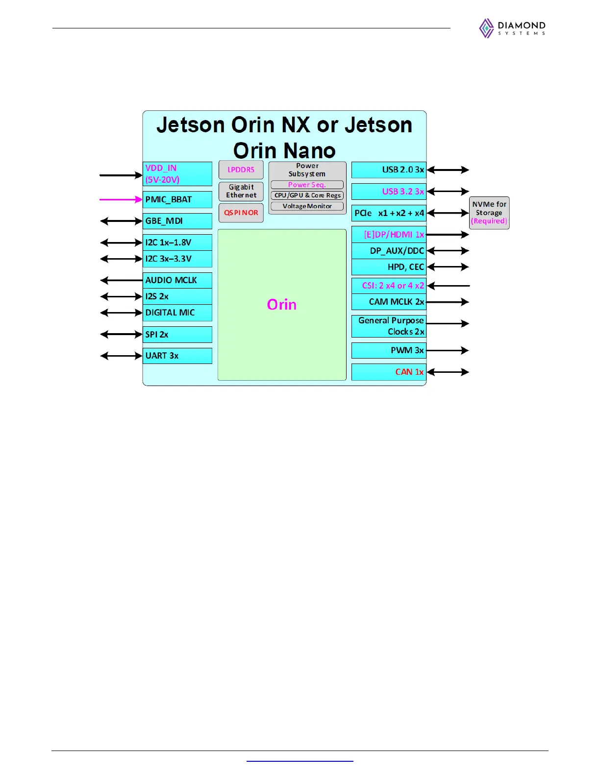 Diamond Systems JACKSON - Orin NX or Nano Series Module Block Diagram