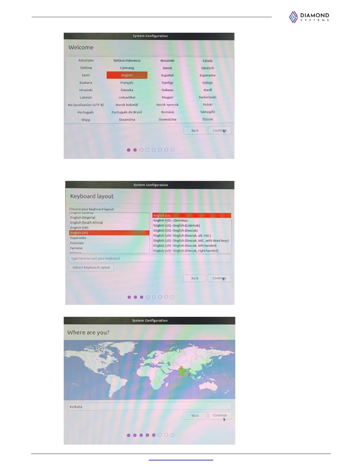 d. Select English (US) for Keyboard layout and click on continue.