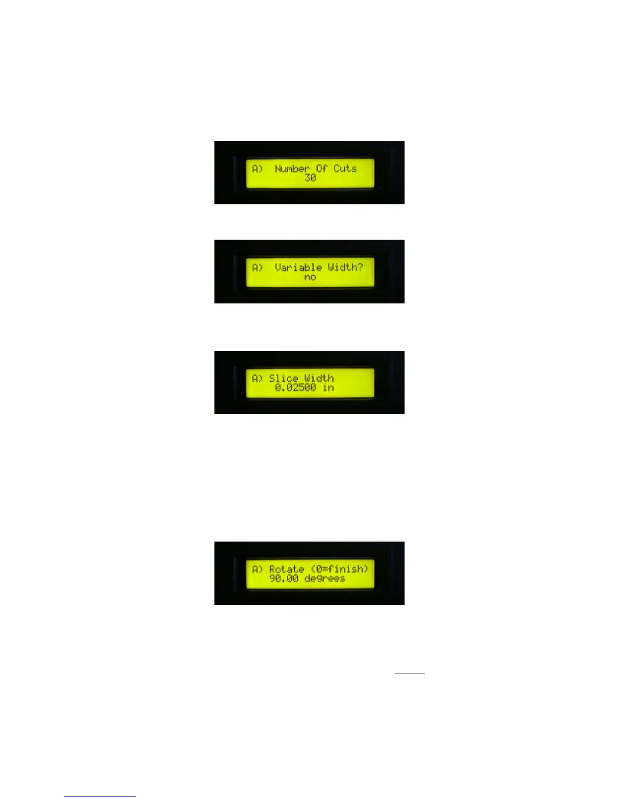 5. Use the up and down arrow keys to specify an angle of rotation prior to the next cut sequence. If