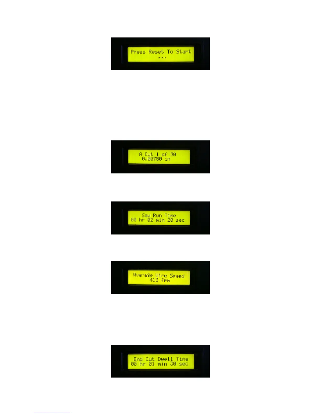 This screen indicates the average linear speed of the cutting wire, calculated each time the capstan