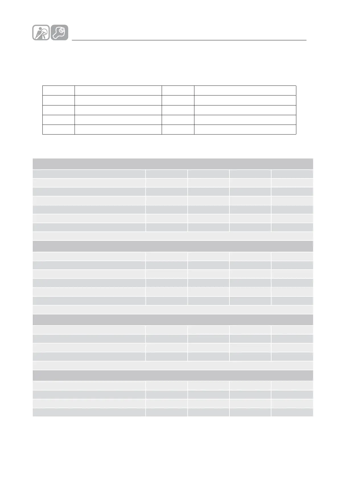 Tabela de dados técnicos G2SA11 - G4SA11 - G4SF11 - G4SFE11